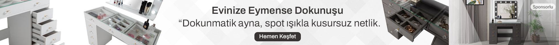 Aynalı makyaj masası fiyatları belirlenirken kullanılan malzeme ve tasarımındaki özgünlük dikkate alınmaktadır. Bu anlamda makyaj masası fiyatları da bu değişkenlerin ile en doğru fiyatını bulabilmektedir. Bunun yanında boyutu, kullanılan malzemesi, sandalye ya da pufun kalitesi, çekmece sayısı gibi etkenler bu tuvalet aynası modelleri ve fiyatlarında etkili olmaktadır. Her ne modelde ve boyutta olursa olsun kullanıcı kadınlar tarafından her zaman fonksiyonel yapılarının yanı sıra diğer mobilyalara da uyumu konusunda hassasiyet göstermektedirler. Kadınların bu hassasiyetleri tasarımcıları ve üreticileri bu yönde üretimler yapmasına yönlendirmektedir. Aynalı tuvalet masası en klasik modeliyle de olsa daima kadın kullanıcılar tarafından vazgeçilmez bir yere sahiptir. En güzel toplantılara, en güzel anlara bu mobilyalar karşısında bin bir çeşit hayal kurarak hazırlanırlar. Kadınların hayatında bu denli önemli bir yeri olan bu mobilyaların çok farklı bir işlevi daha bulunmaktadır. Ev dekorasyonu anlamında rengiyle tasarımıyla ve görüntüsüyle çok özel bir parça olarak tamamlayıcı bir rolü bulunmaktadır. Bu ürünlerin olmadığı bir yatak odası eksik kalmaya mahkumdur. Tuvalet masası modelleri ve fiyatları çok farklı değişkenler ve kriterler ile belirlenmektedir. Markalar yüzlerce çeşit amatör ve profesyonel makyaj masası üretimi ve tasarımında bu kriterleri dikkate alarak ürün ortaya koymaktadırlar. Tamamen kadınların mutluluğu ve konforlu bir deneyimin sunulması amaçlanmaktadır. Günümüzde en çok tercih edilen küçük makyaj masası modelleri ahşap ve minimal formda olan mobilyalardır. Bina yapılarının git gide küçüldüğü bir dönemde mobilyalarında bu yapılarla doğru orantılı olarak daha küçük yapılarda ve boyutlarda üretilmesi gerekliliği doğmuştur. Yatak odası içerisinde fazla yer kaplamayan, belirli bir hacme sahip modeller tercih edilmektedir. Mini makyaj masası bu anlamda yoğun bir tercih ve teveccüh görmektedir. Hayatın hızına ve temposuna yetişmeye çalışan herkes her alanda hızı ve pratikliği ön plana almak zorunda kalmaktadırlar. Aynı şekilde kozmetik uygulamaları da daha hızlı ve pratik bir şekilde yapılabilmektedir. Bu anlamda kullanılan modeller de minimal yapıya sahip ancak birbirinden değerli tasarım öğelerini barındıran modern bir yaklaşımı yansıtmaktadır. Her bir kullanıcıya hitap edebilen binlerce makyaj masası modelleri ve fiyatlarına ulaşabilmek artık bir tıklama kadar kolay. Birbirinden farklı renkte, modelde ve fonksiyonda ürünlere Trendyol’un sade ve kullanışlı makyaj masası seçeneklerine vasıtasıyla online olarak sahip olabilmektesiniz.