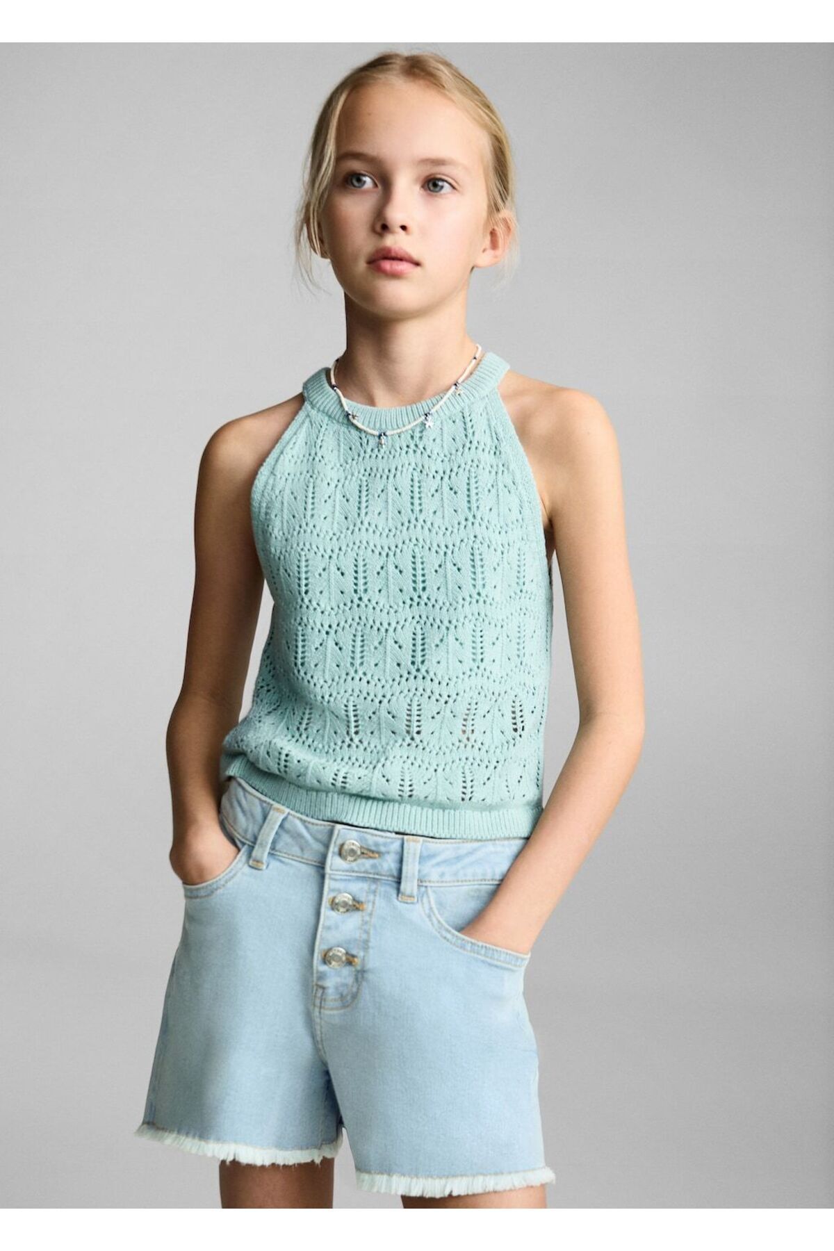 MANGO Kids Paçaları dikişsiz denim şort Özellikleri