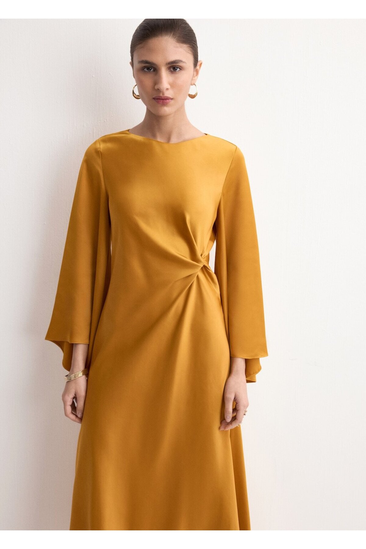 MANGO Woman Asimetrik yaka evaze elbise Özellikleri