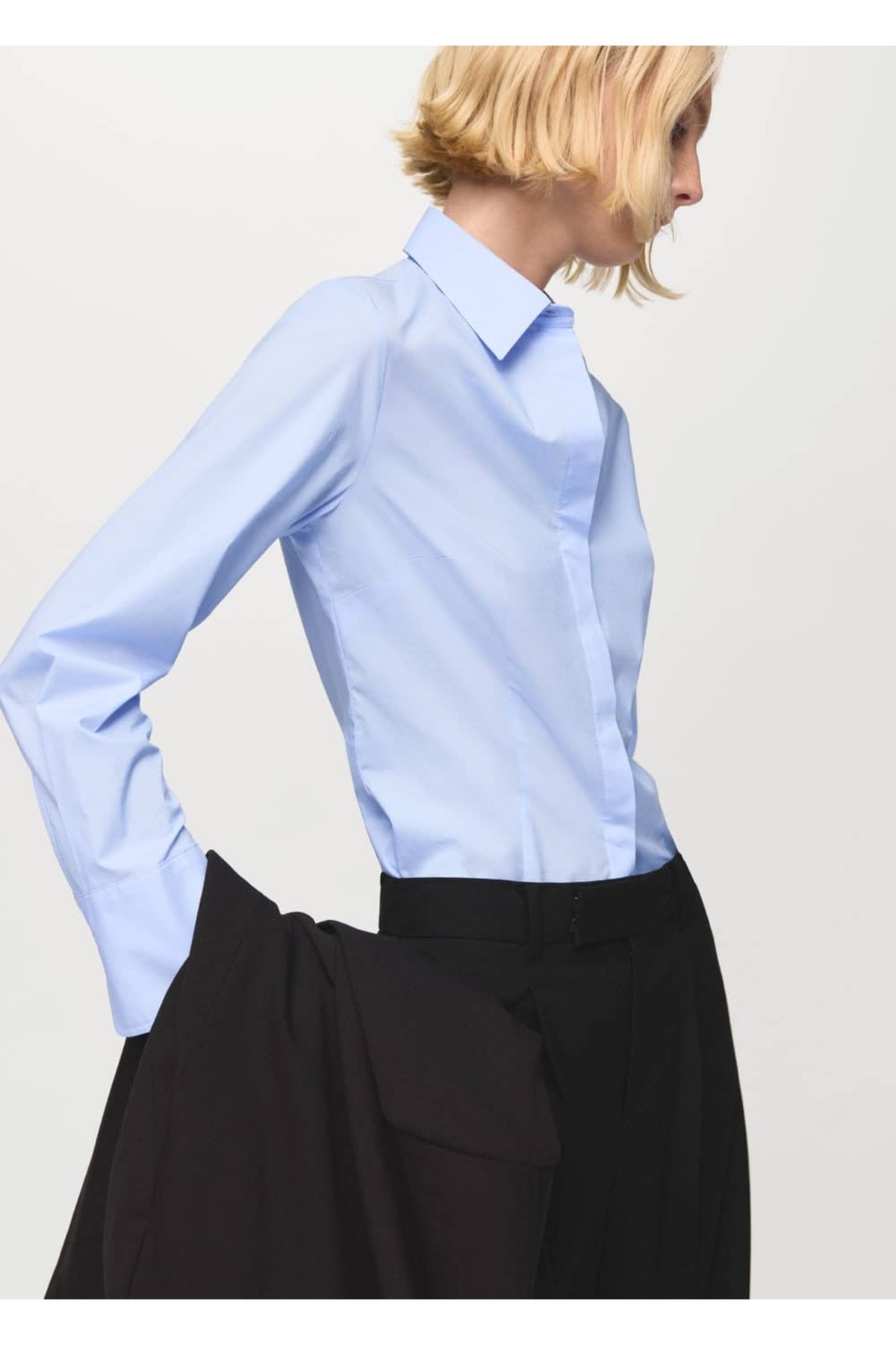 MANGO Woman Bedene oturan poplin gömlek Özellikleri