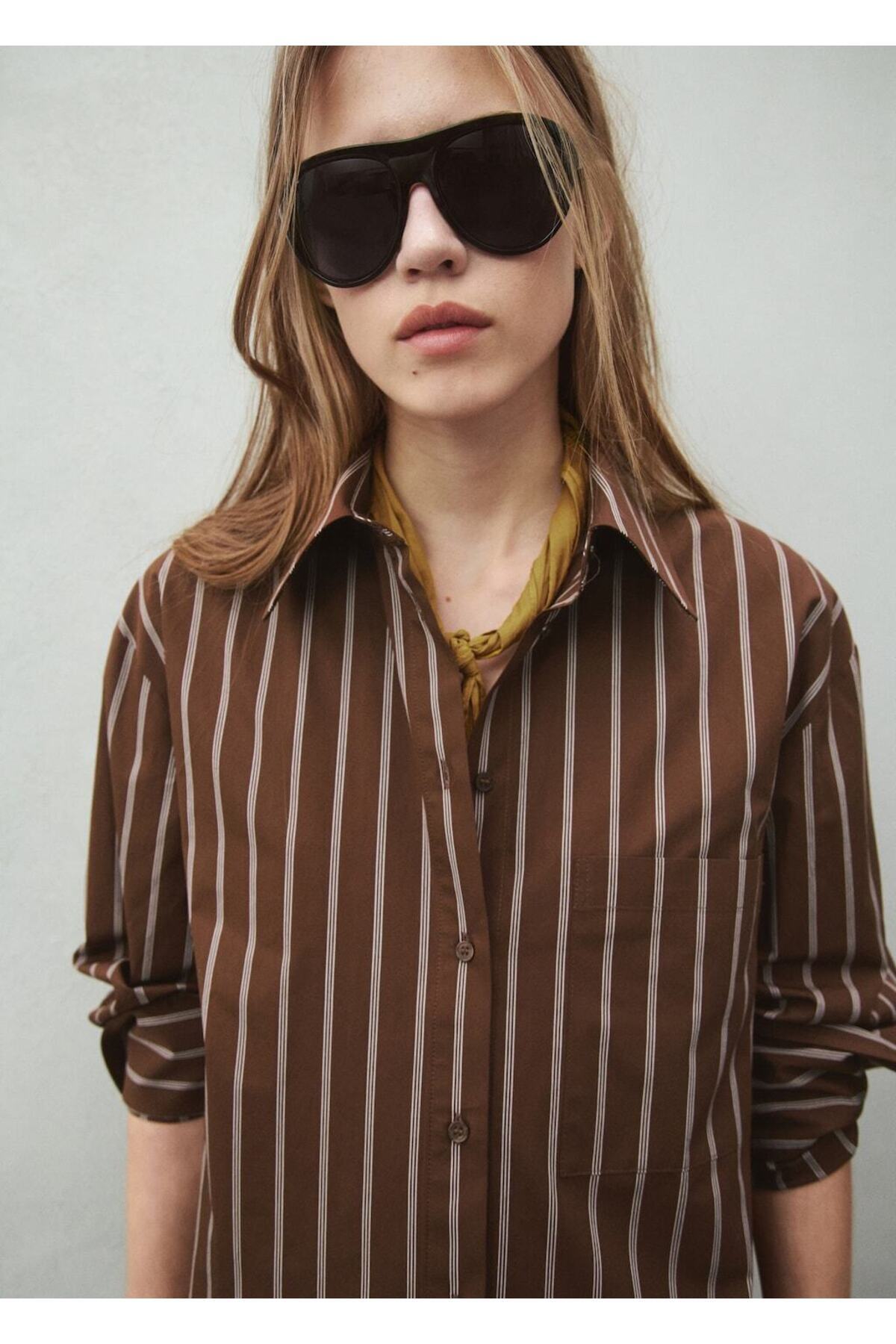 MANGO Woman Cepli çizgili gömlek Özellikleri
