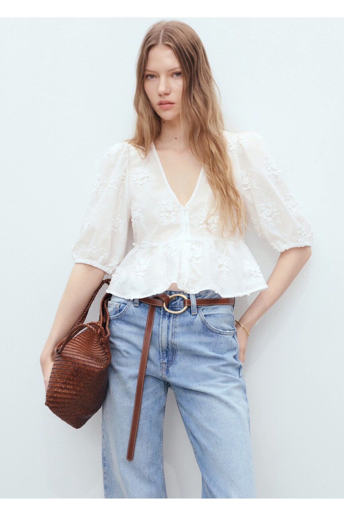 MANGO Çiçek işlemeli pamuklu bluz