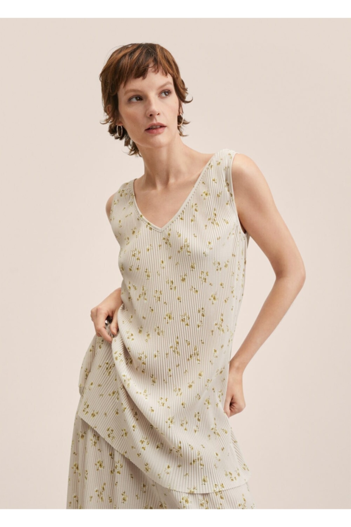 MANGO Woman Çiçekli Pilili Üst Özellikleri