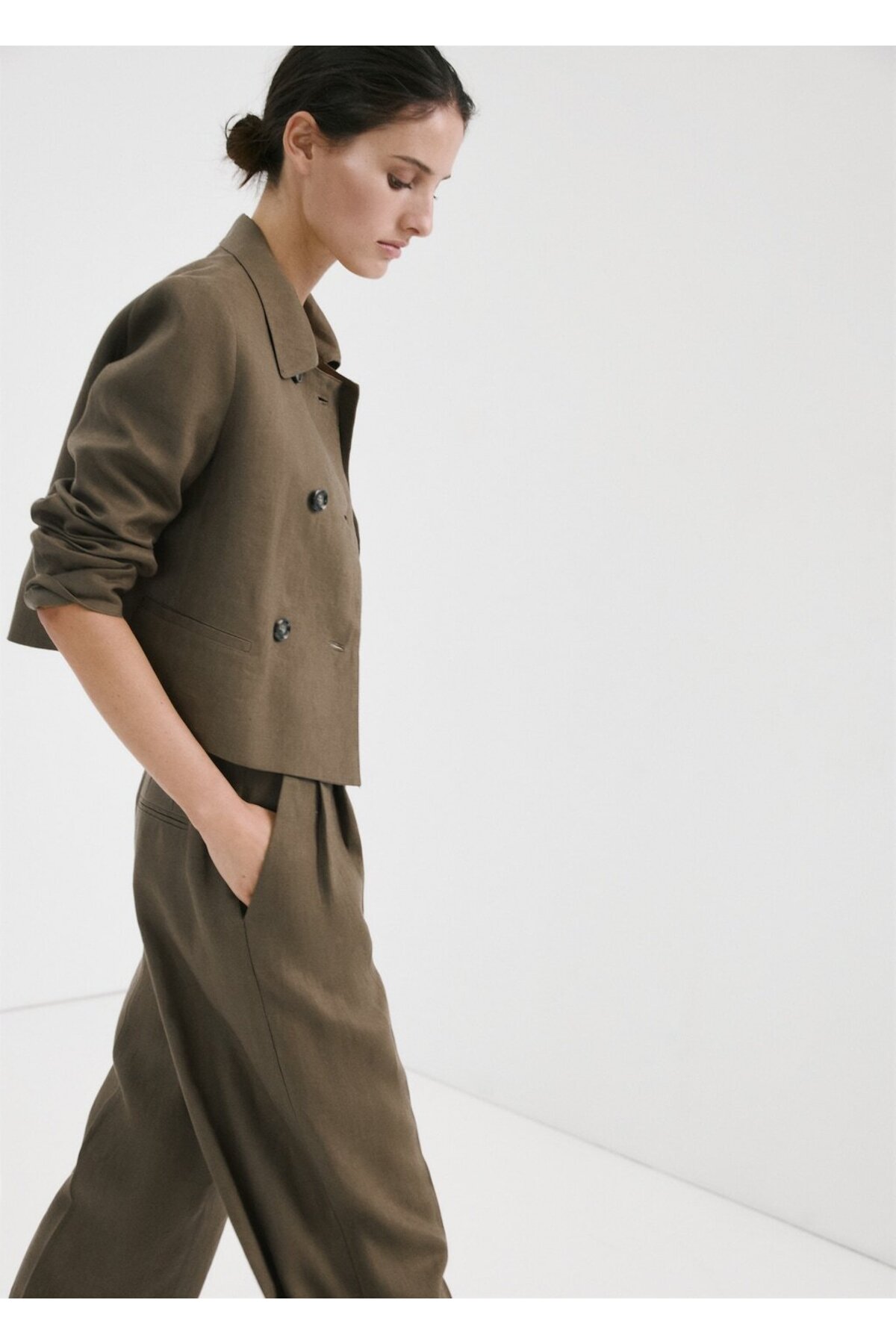 MANGO Woman Çift düğmeli keten blazer ceket Özellikleri