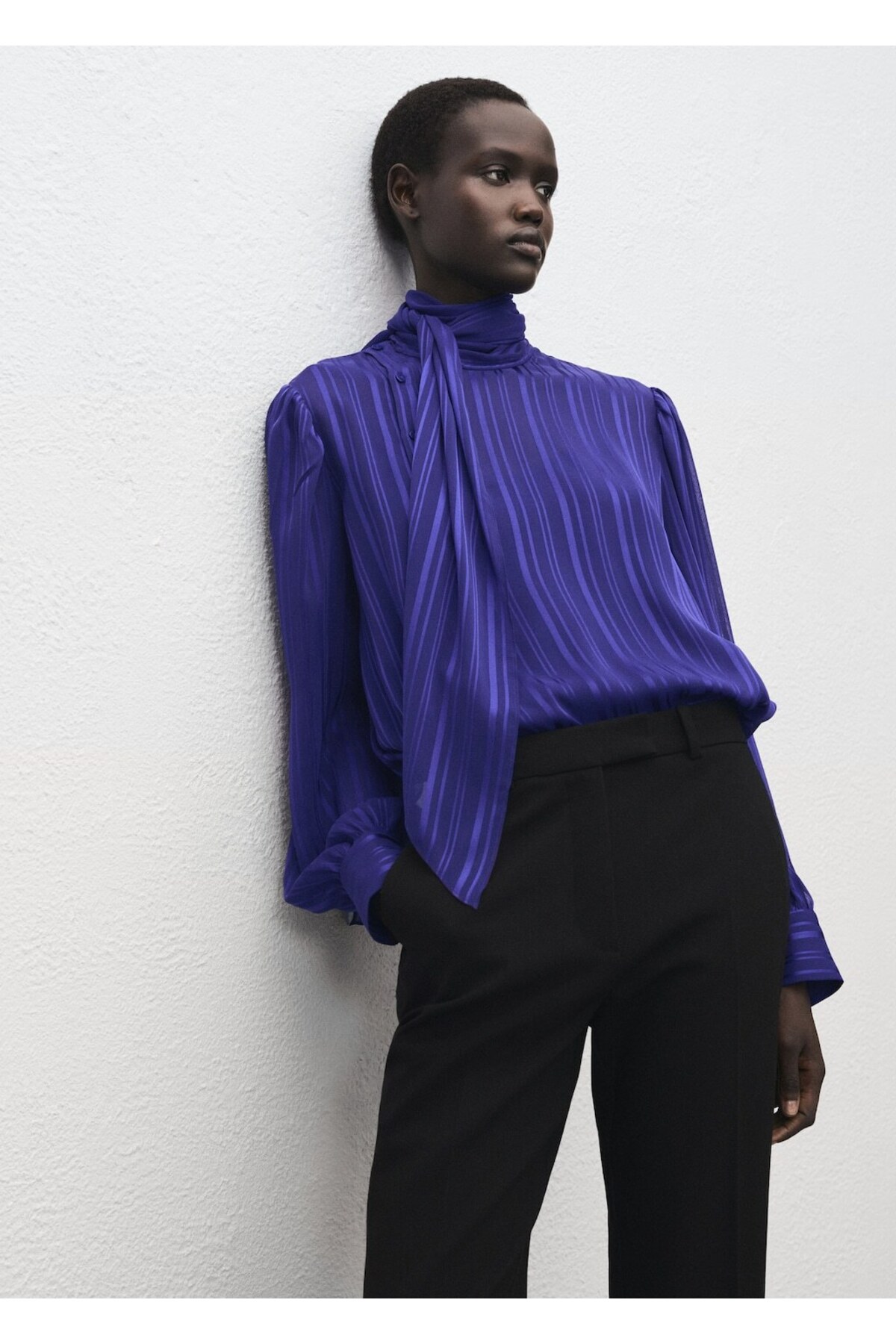 MANGO Woman Çizgili fular detaylı bluz Özellikleri