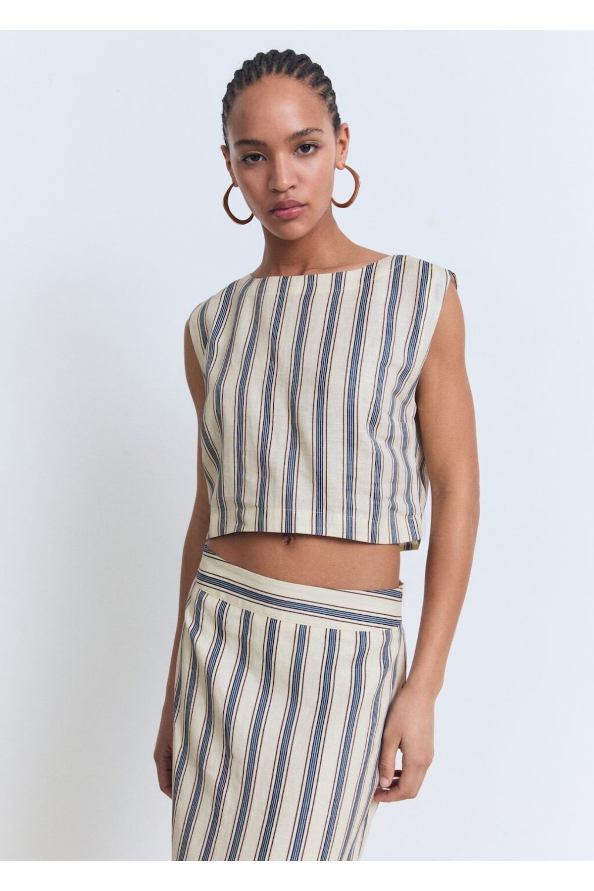MANGO Çizgili keten bluz