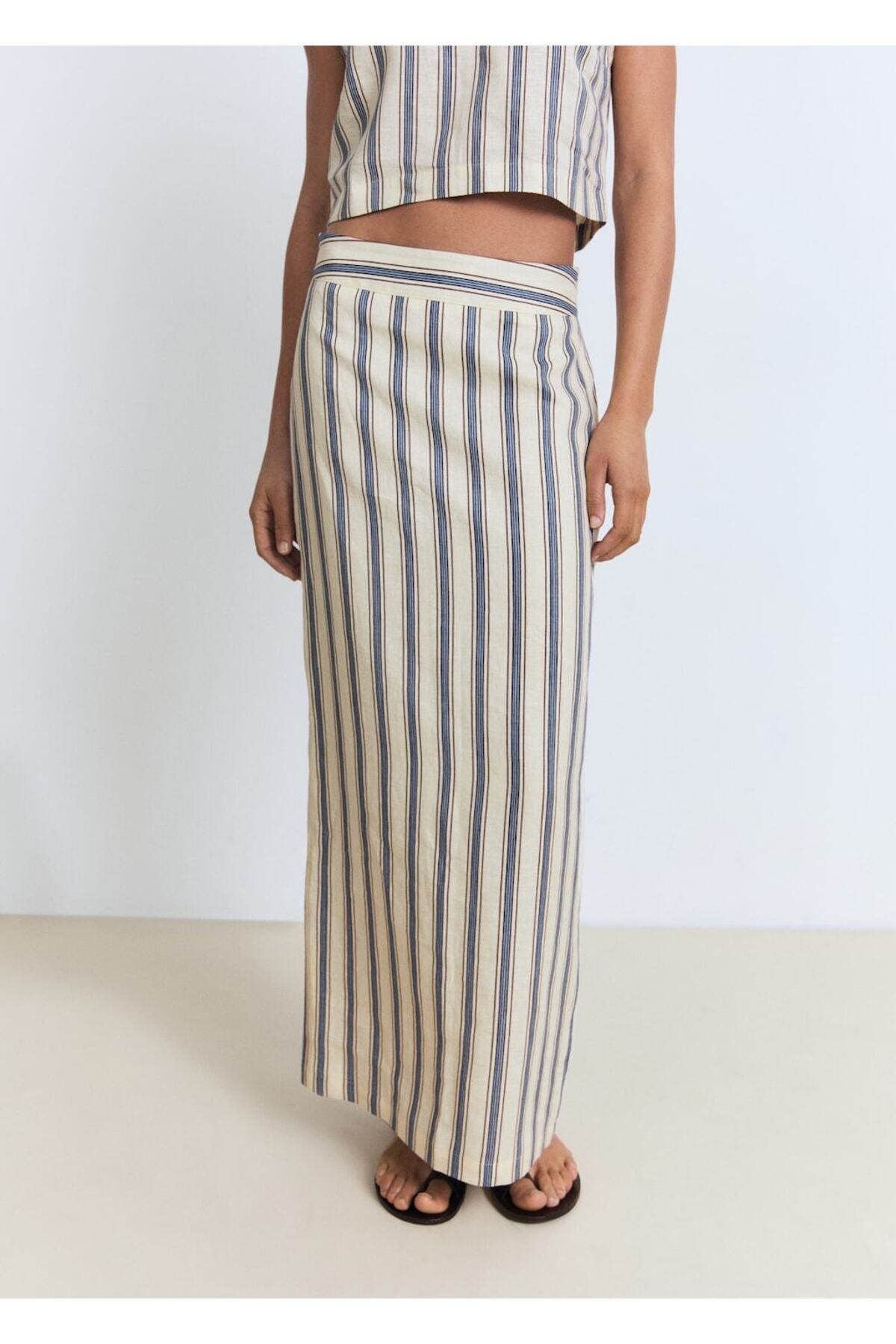 MANGO Woman Çizgili keten etek Özellikleri