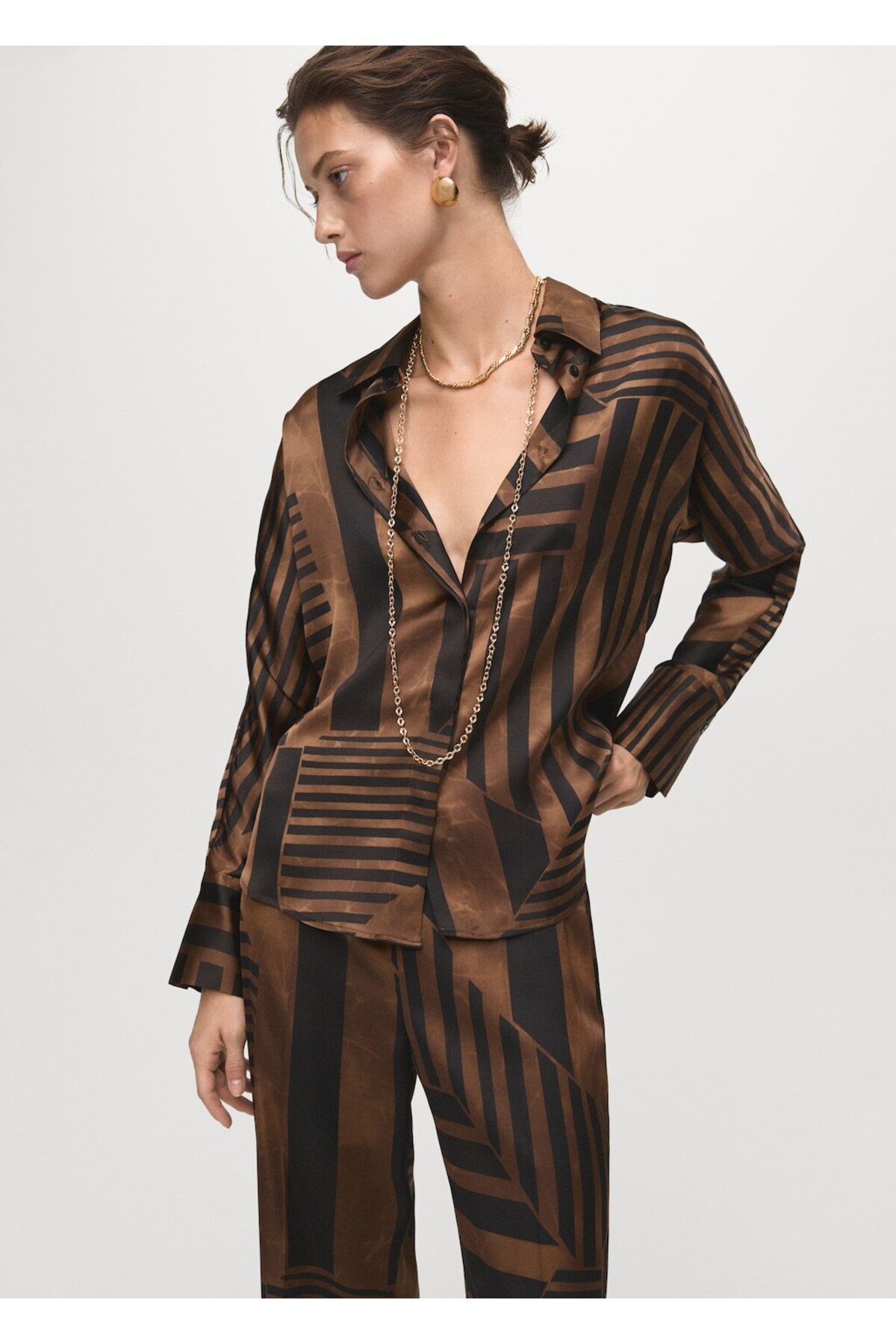 MANGO Woman Çizgili saten gömlek Özellikleri
