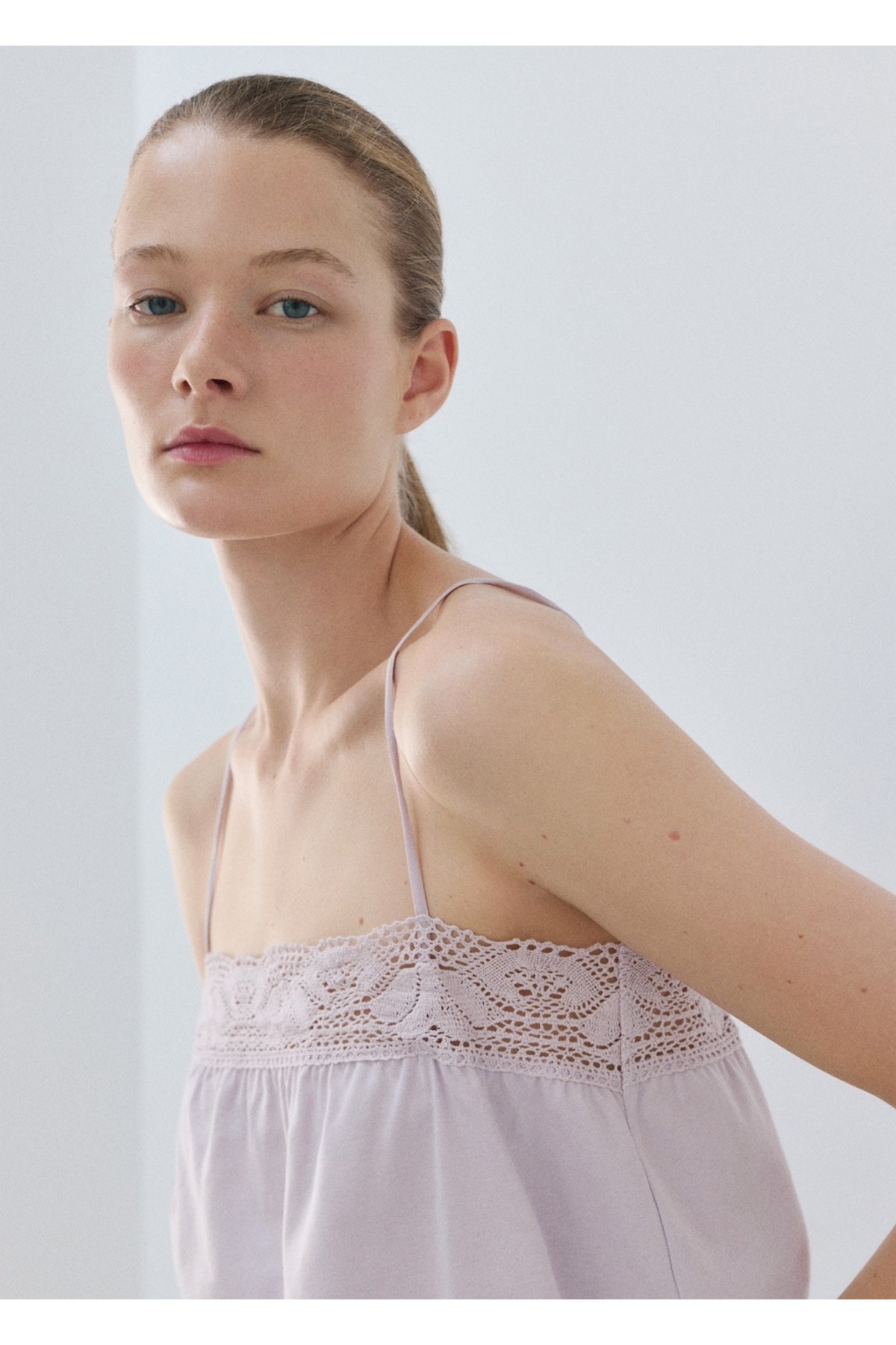 MANGO Woman Dantel askılı pamuklu bluz Özellikleri