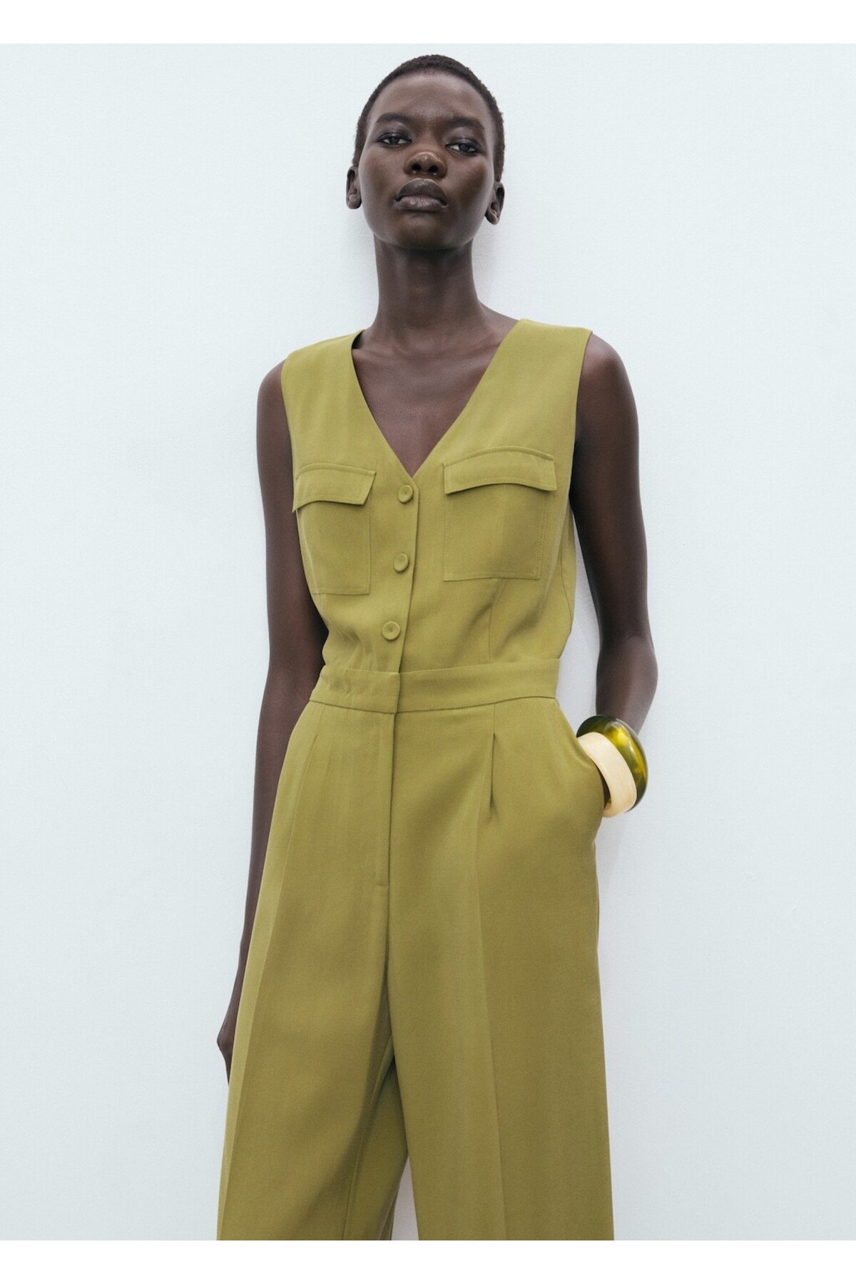 MANGO Woman Göğsü cepli uzun tulum Özellikleri