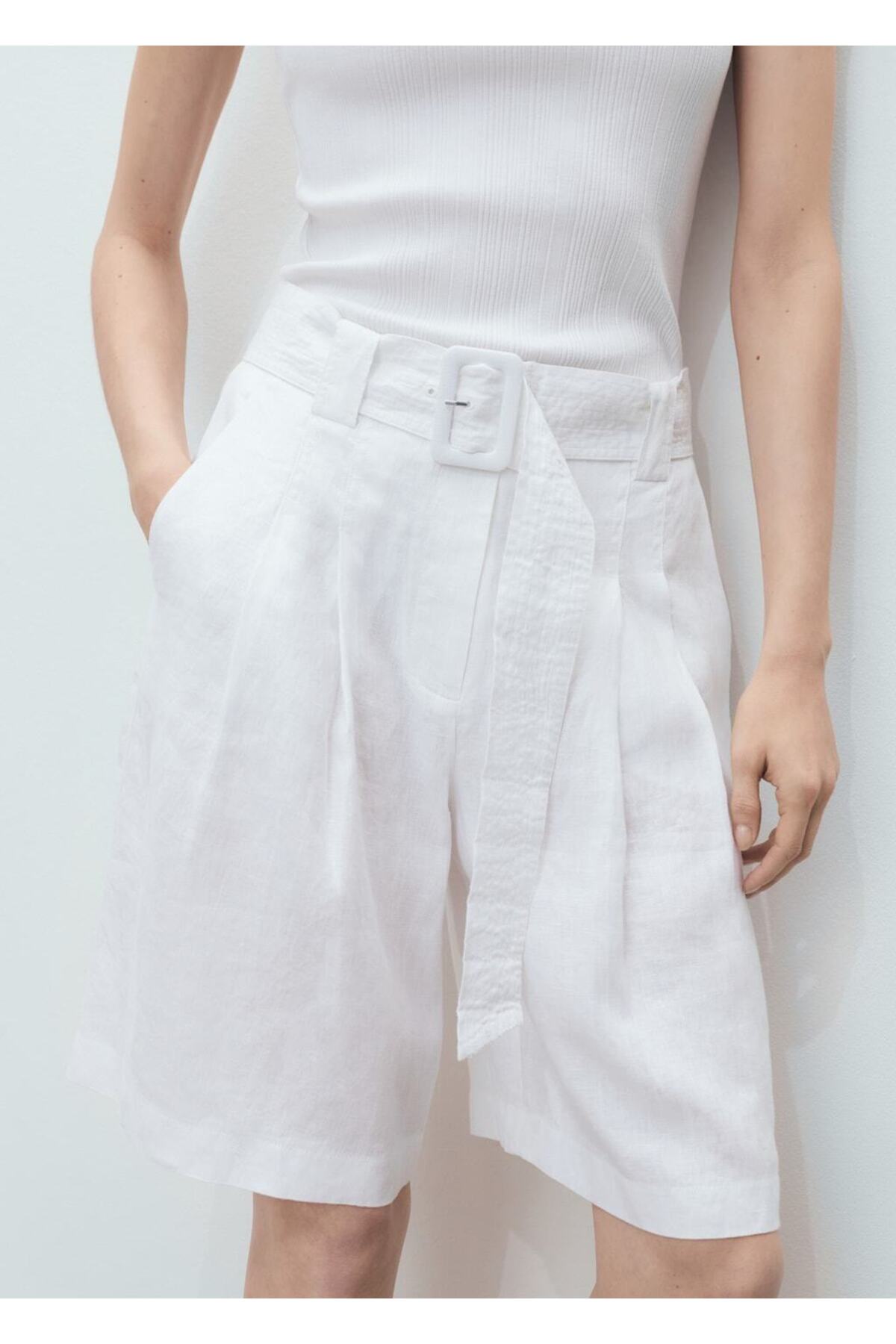 MANGO Woman Keten karışımlı kemerli bermuda şort Özellikleri