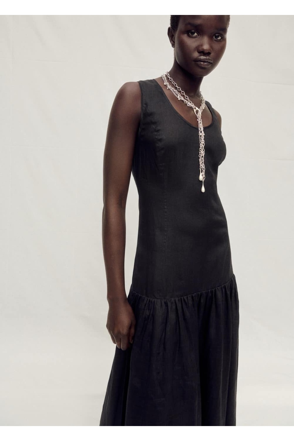 MANGO Woman Keten karışımlı volanlı elbise Özellikleri