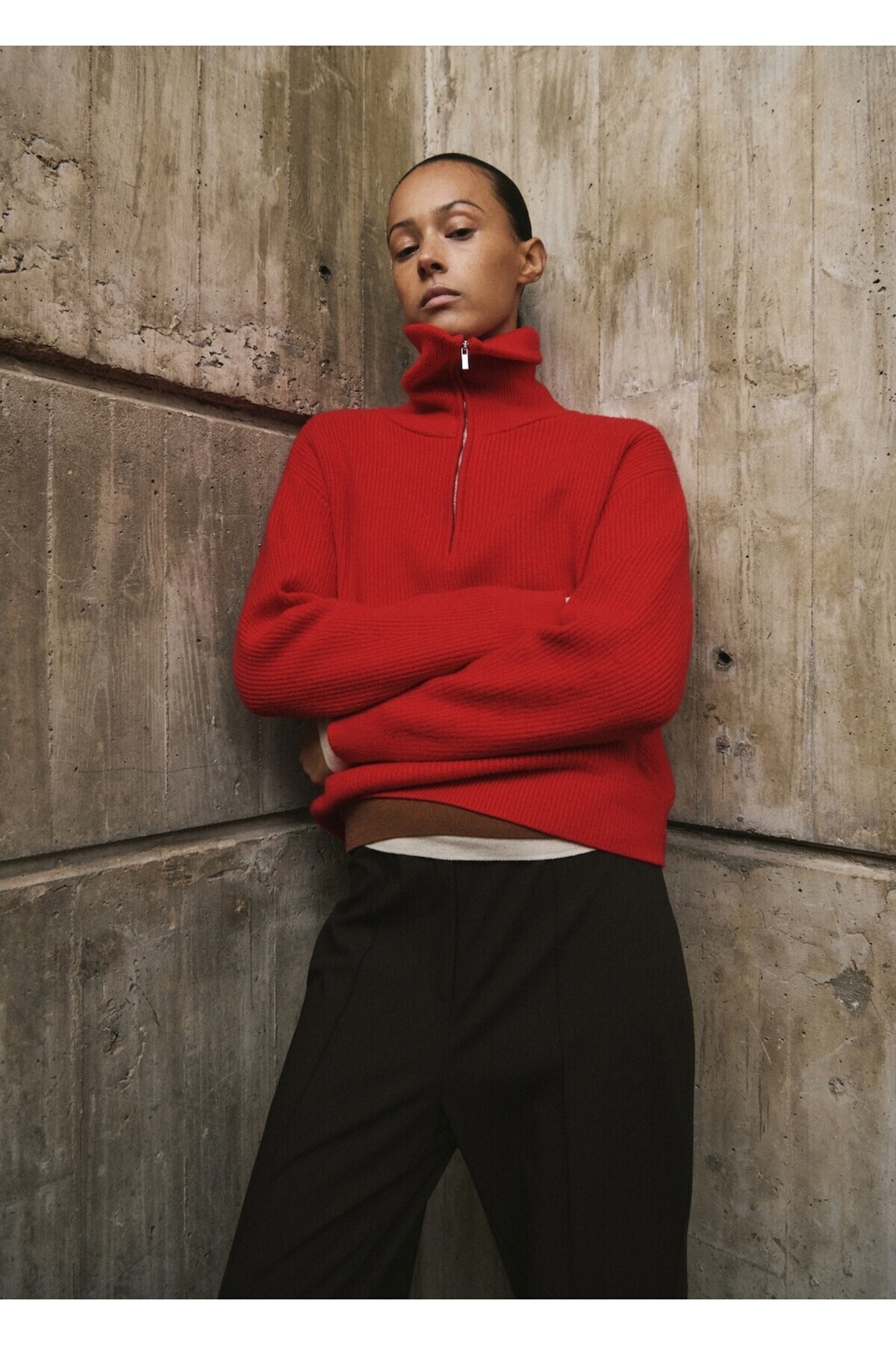 MANGO Kontrast yaka fermuarlı kazak
