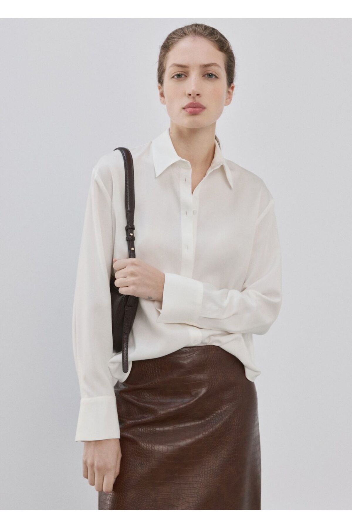 MANGO Lyocell düz kesim gömlek