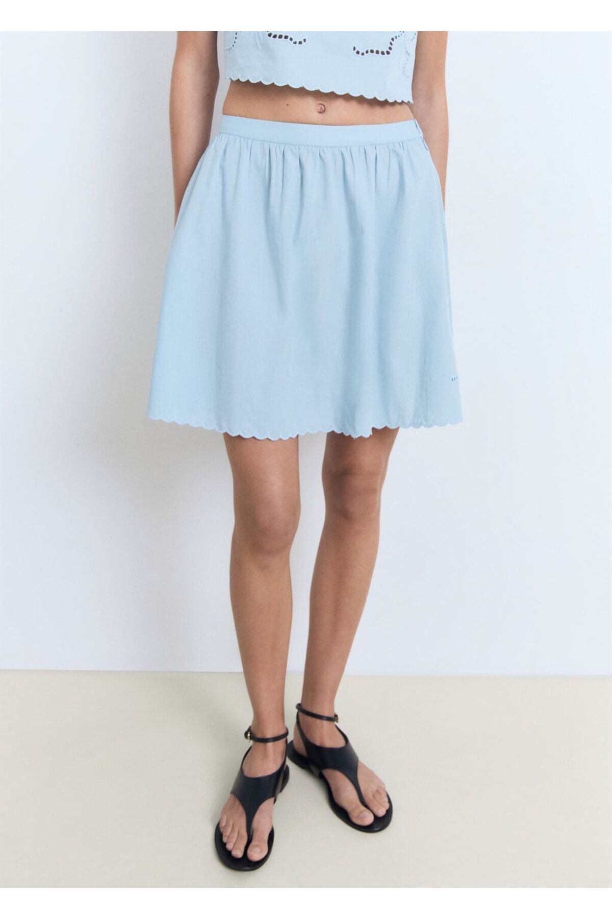 MANGO Nakışlı etek dalgalı etek ucu