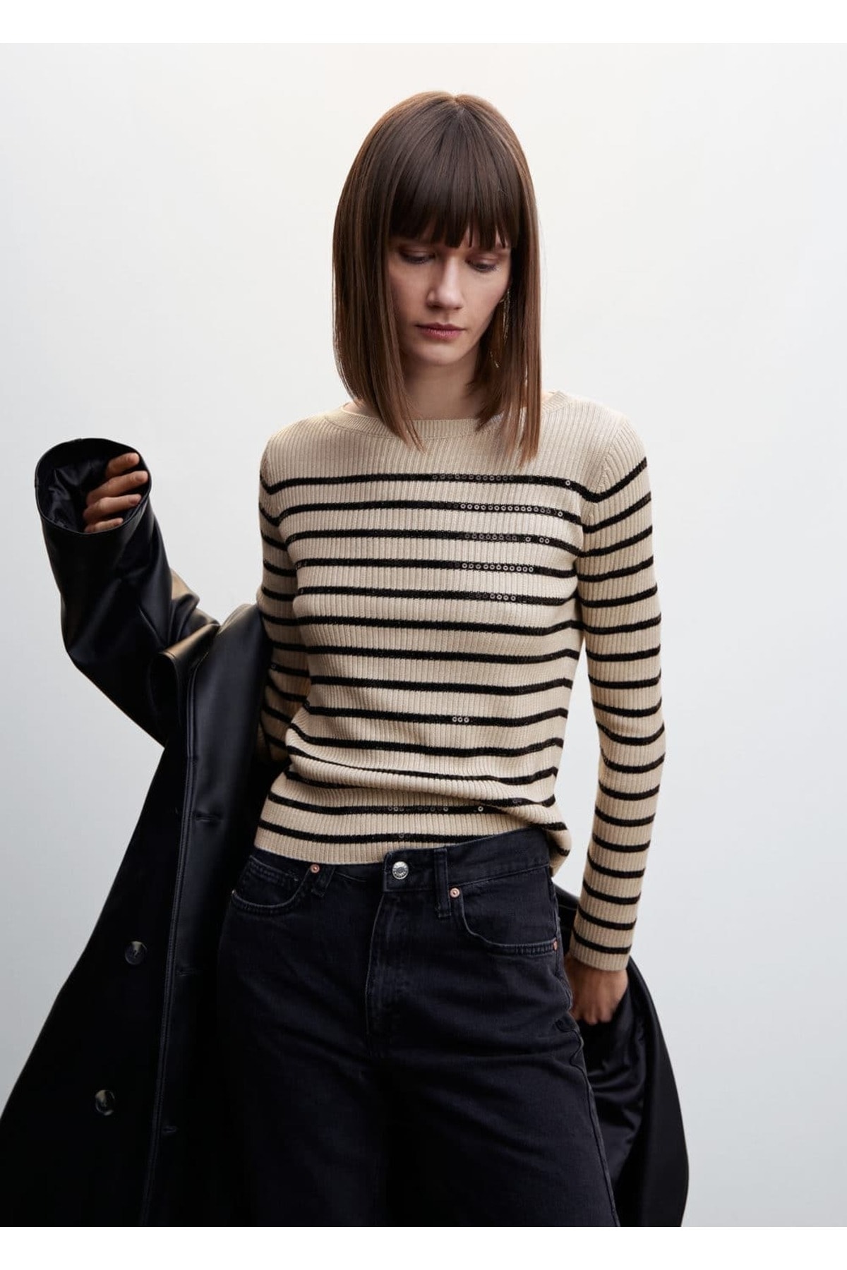 MANGO Woman Payetli Çizgili Kazak Özellikleri