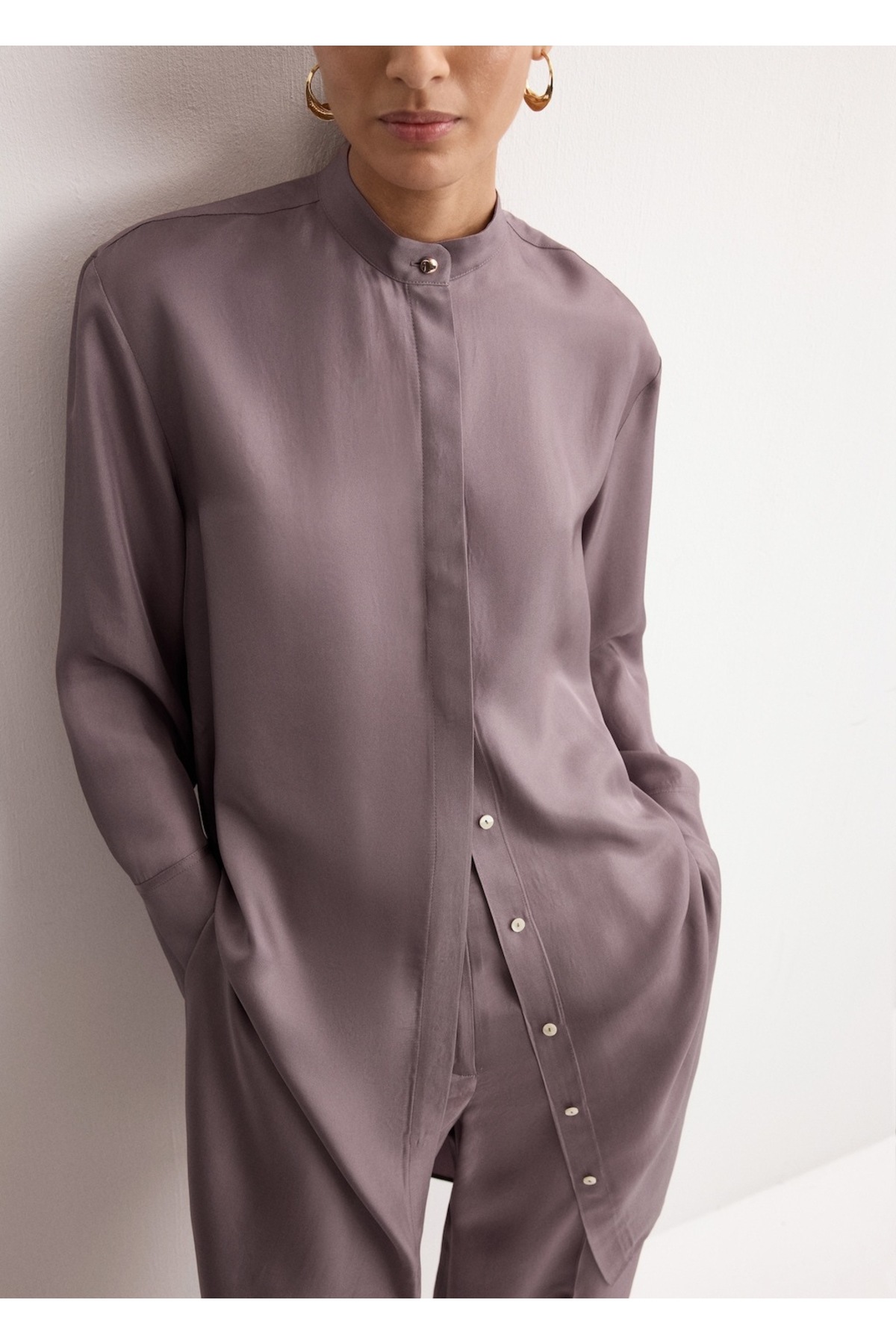 MANGO Woman Uzun gömlek, bant yaka Özellikleri