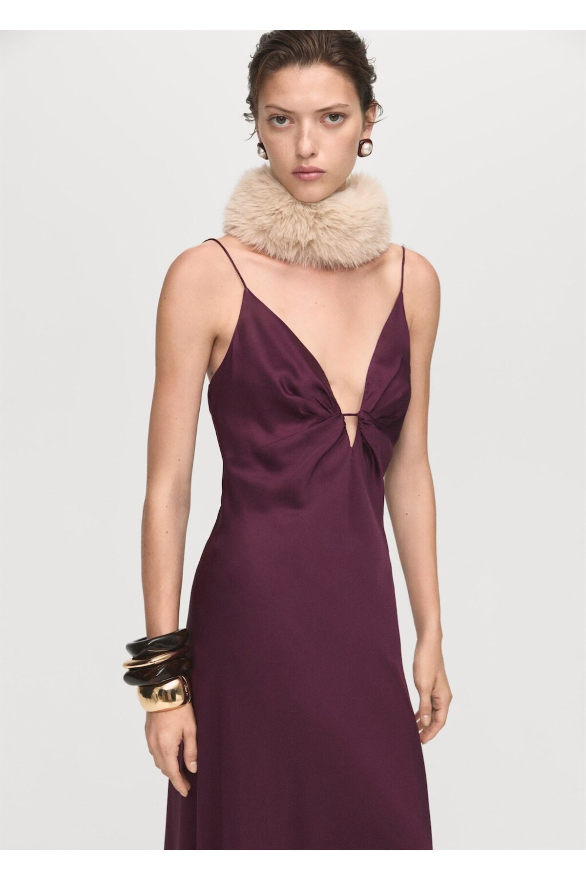 MANGO Woman V yakalı saten elbise Özellikleri