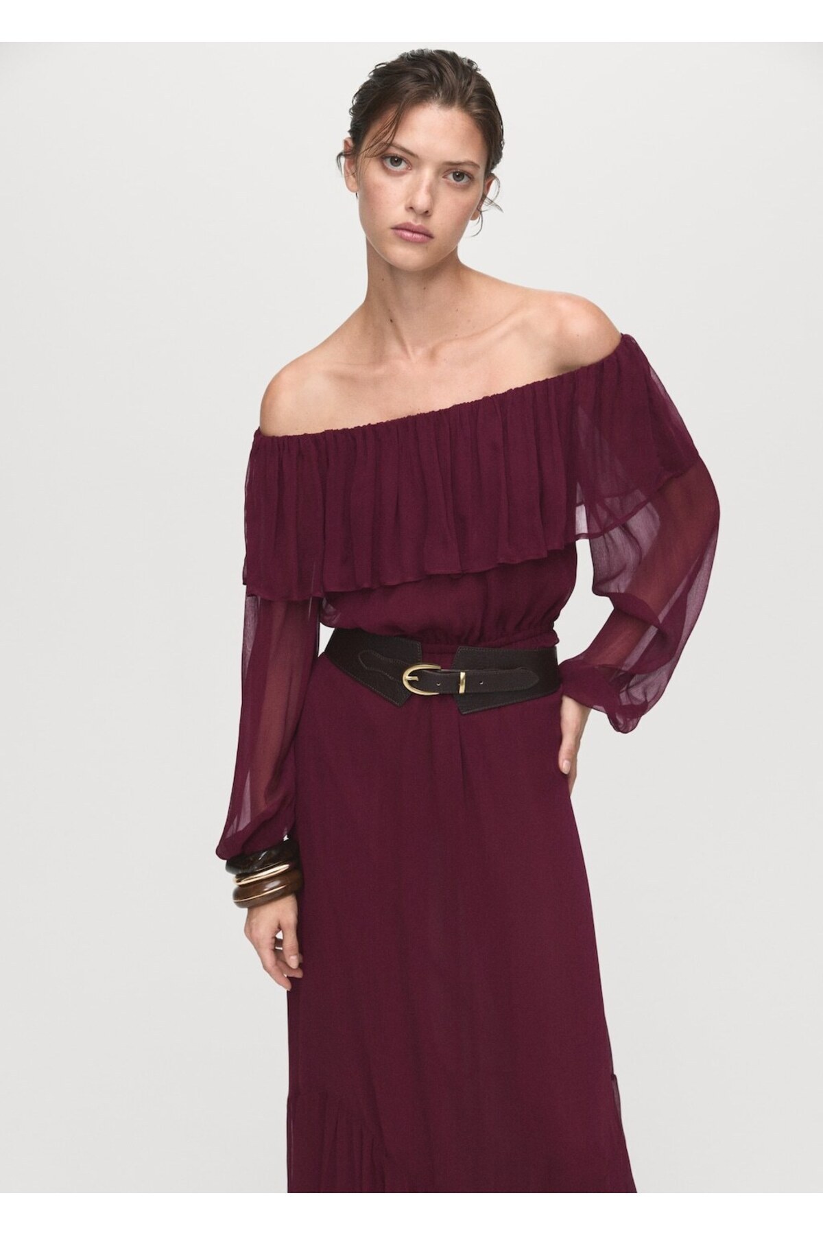 MANGO Woman Volanlı straplez elbise Özellikleri