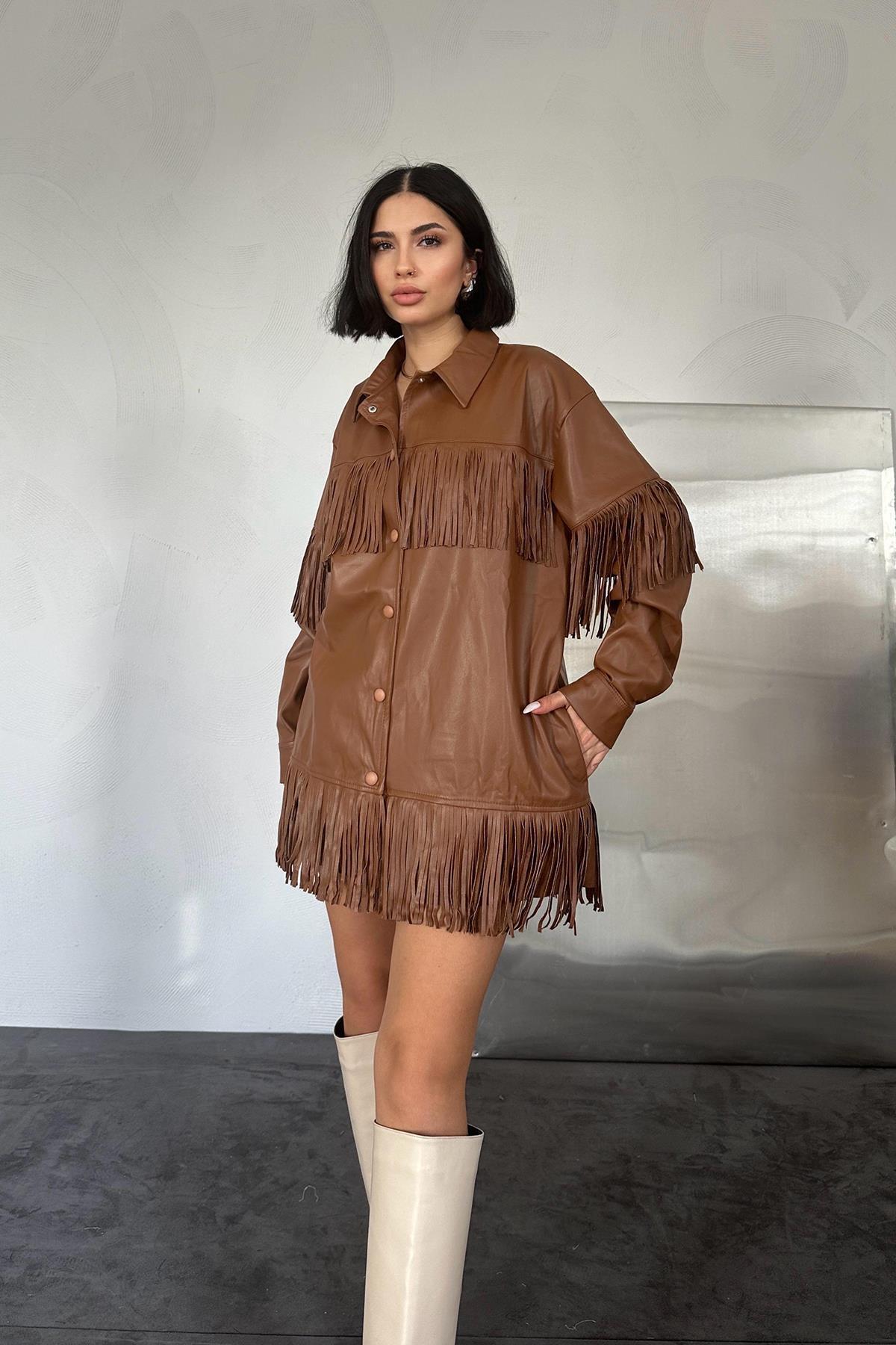 Markano Püsküllü Deri Gömlek