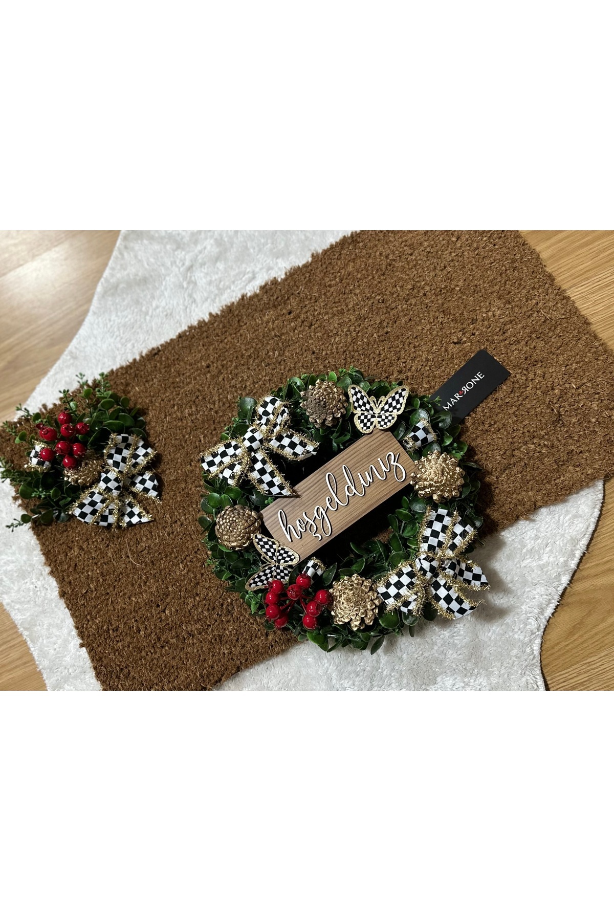Marrone Kapı Süsü Ve Kapı Paspası 70*40 cm Paspas 30cm Çelenk