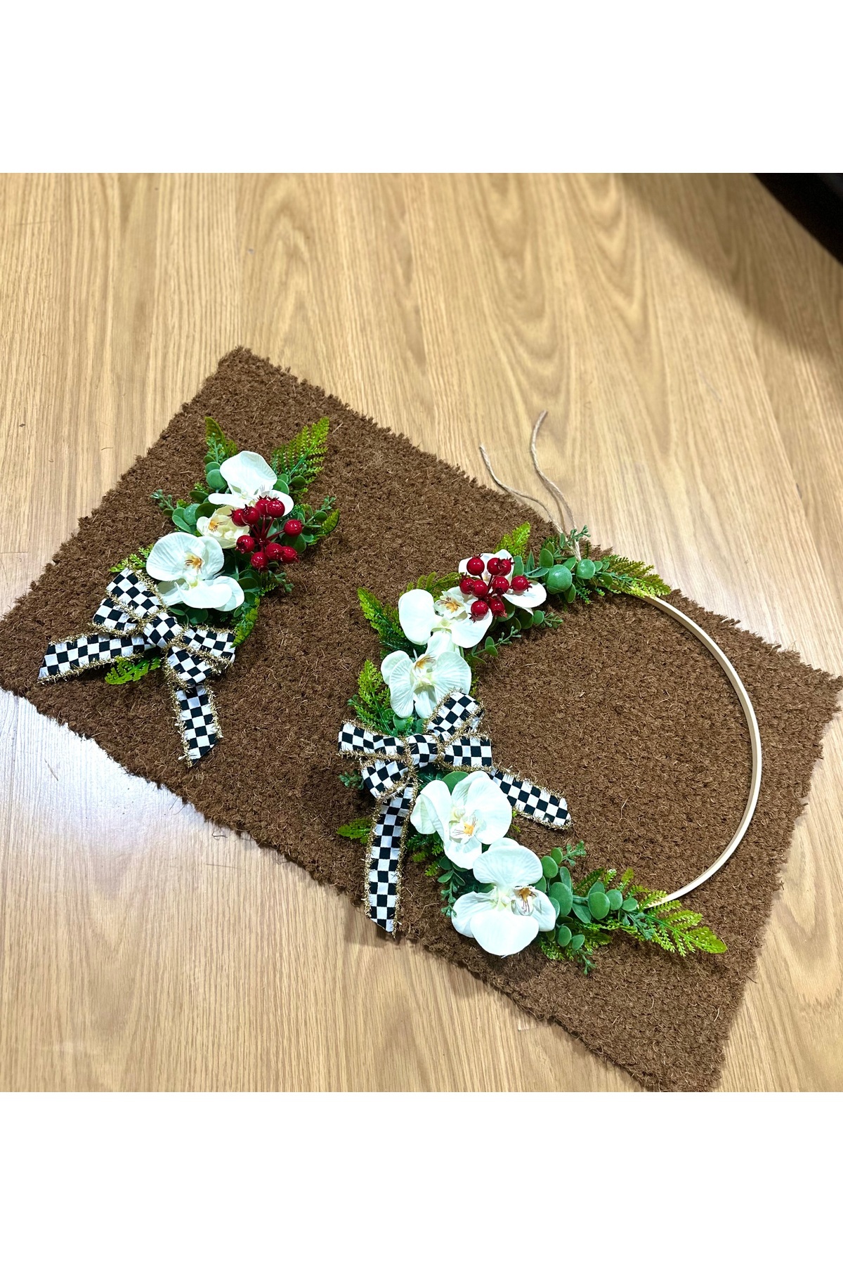 Marrone Orkideli Kapı Süsü Paspas Takımı