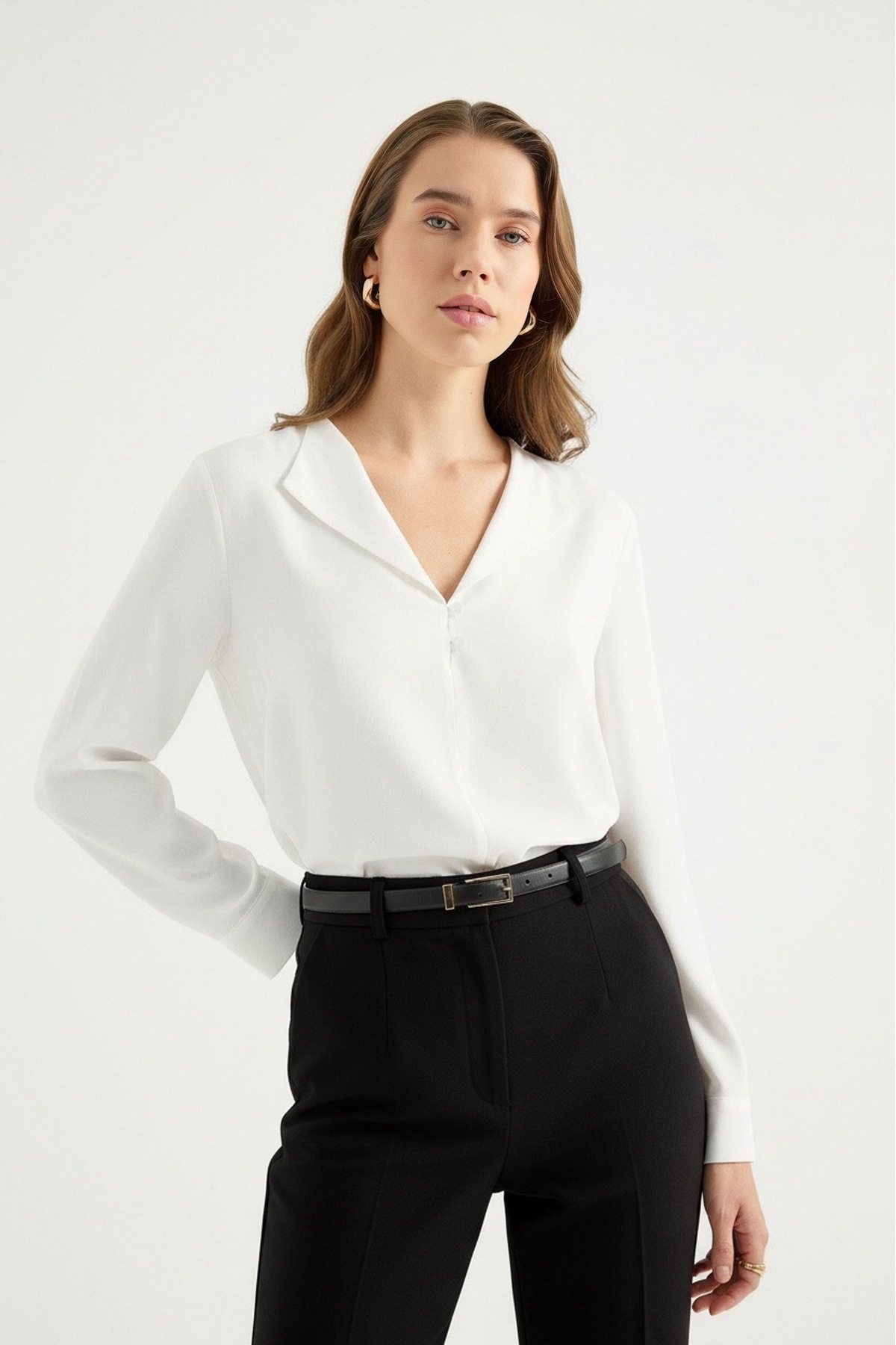 Masha Kate Dökümlü Devrik Yaka Bluz