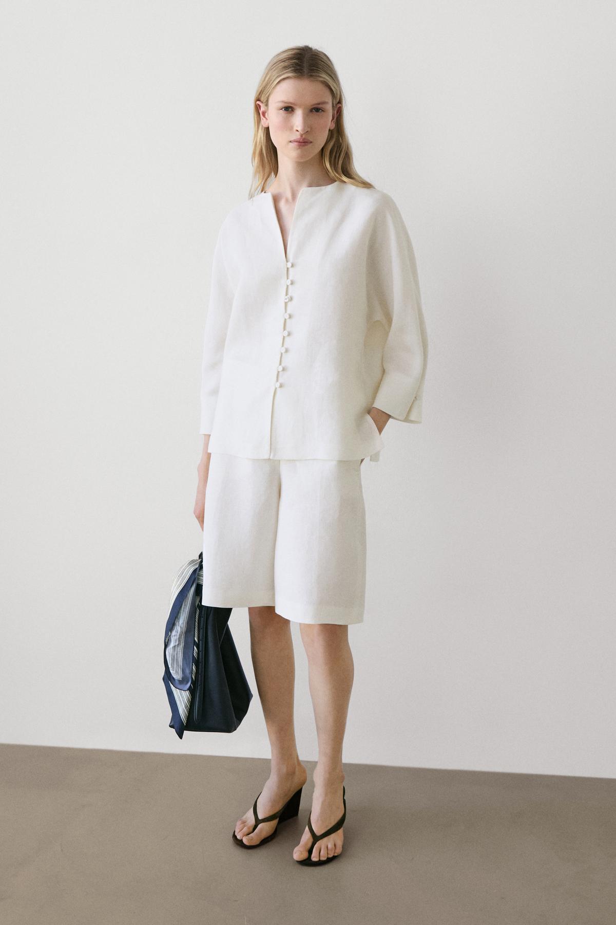 Massimo Dutti Düğmeli keten ceket
