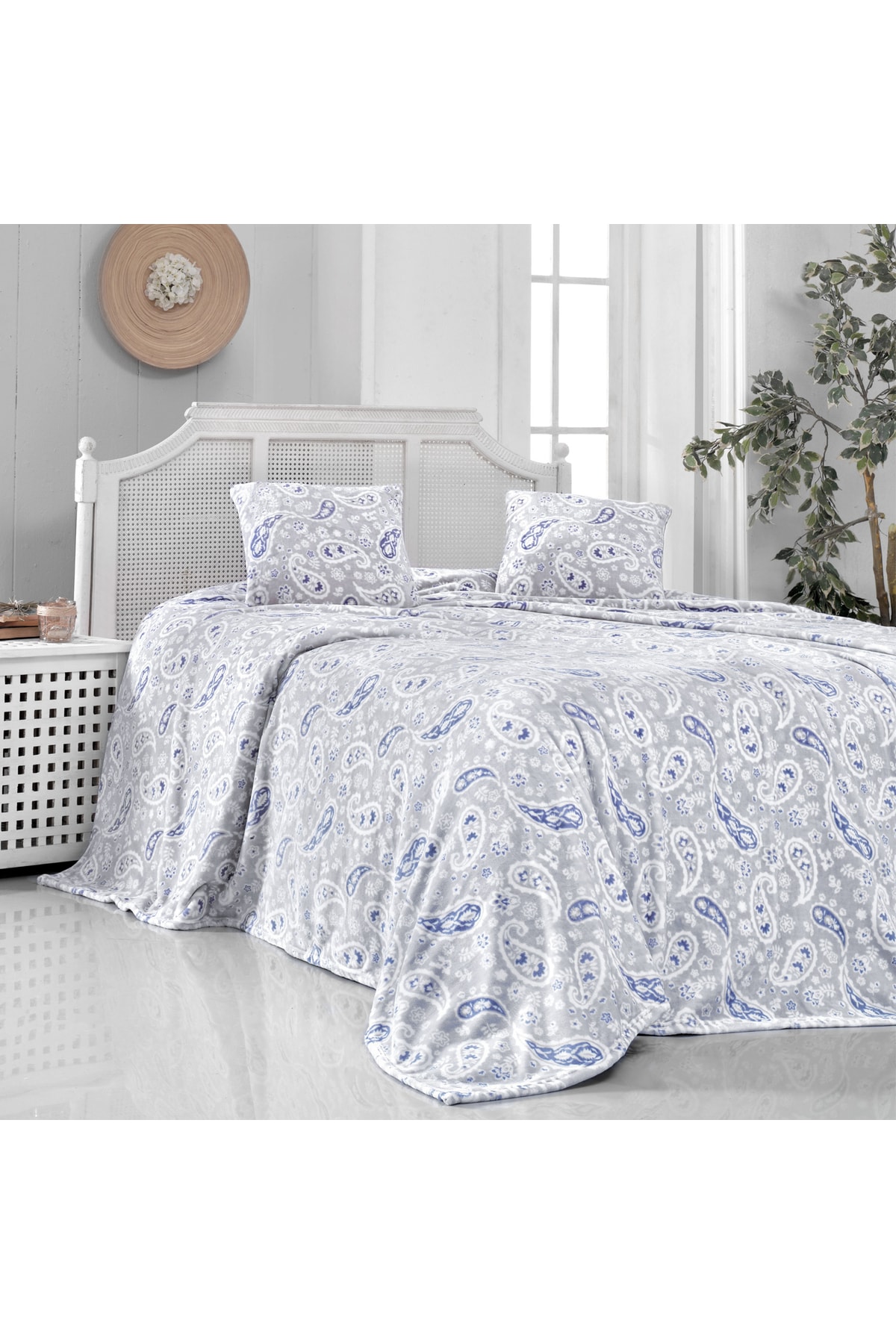MAXSTYLE Bambu Baskılı Yatak Örtüsü Çift/h-204559-peony Gre