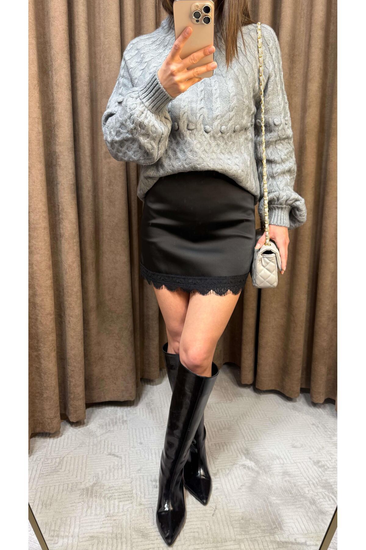 Maysa SİYAH DANTELLİ MİNİ ETEK Özellikleri