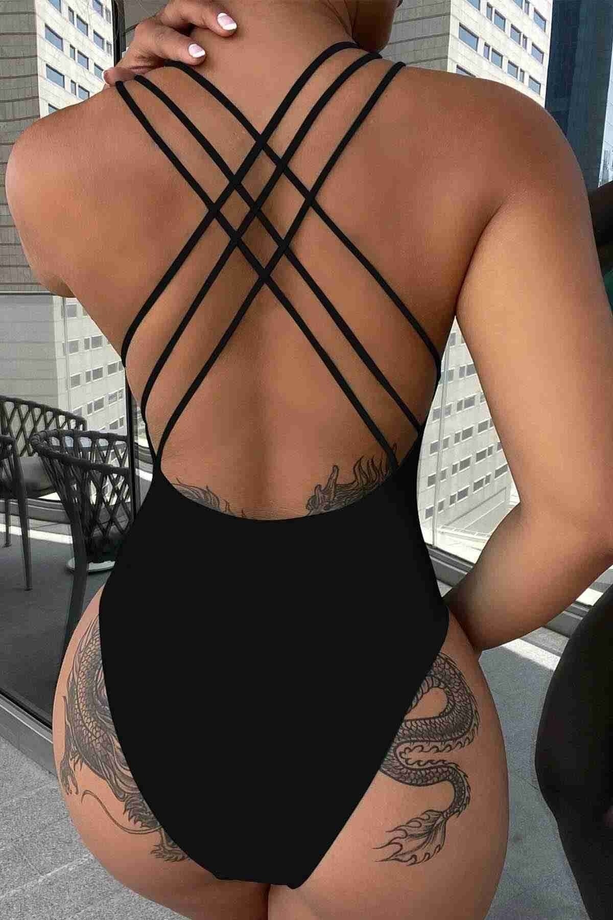 MClady Sırt Dekolteli Çapraz Askılı Mayo
