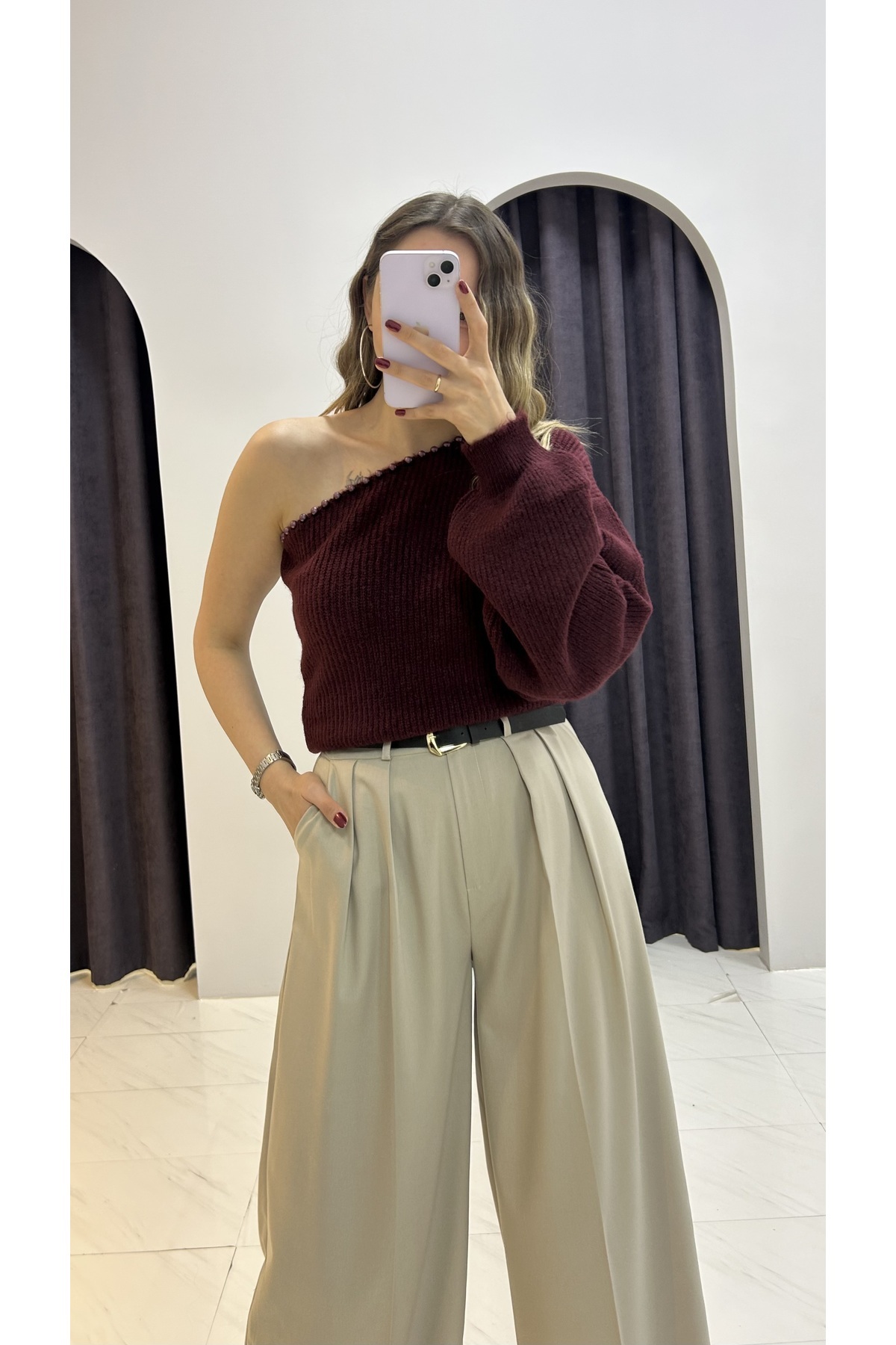 MERVENS Tek Omuz İncili Triko