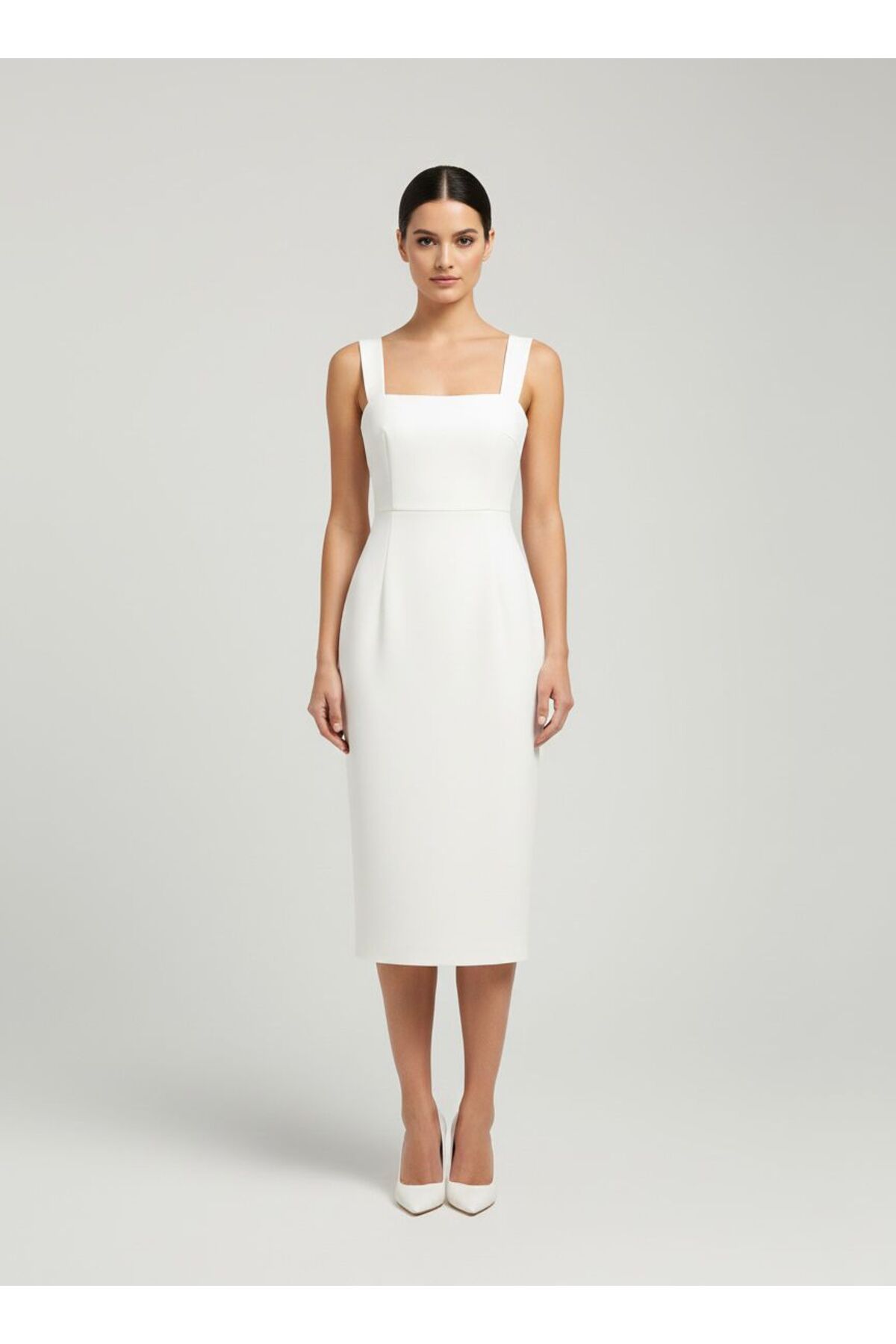 Meşe Moda Kare Yaka Midi Elbise