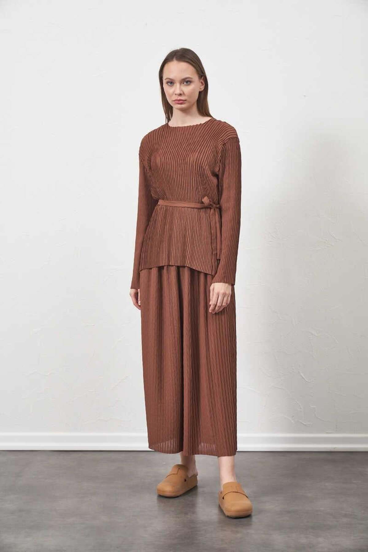 Mevra Pliseli Bluz Kahve Özellikleri