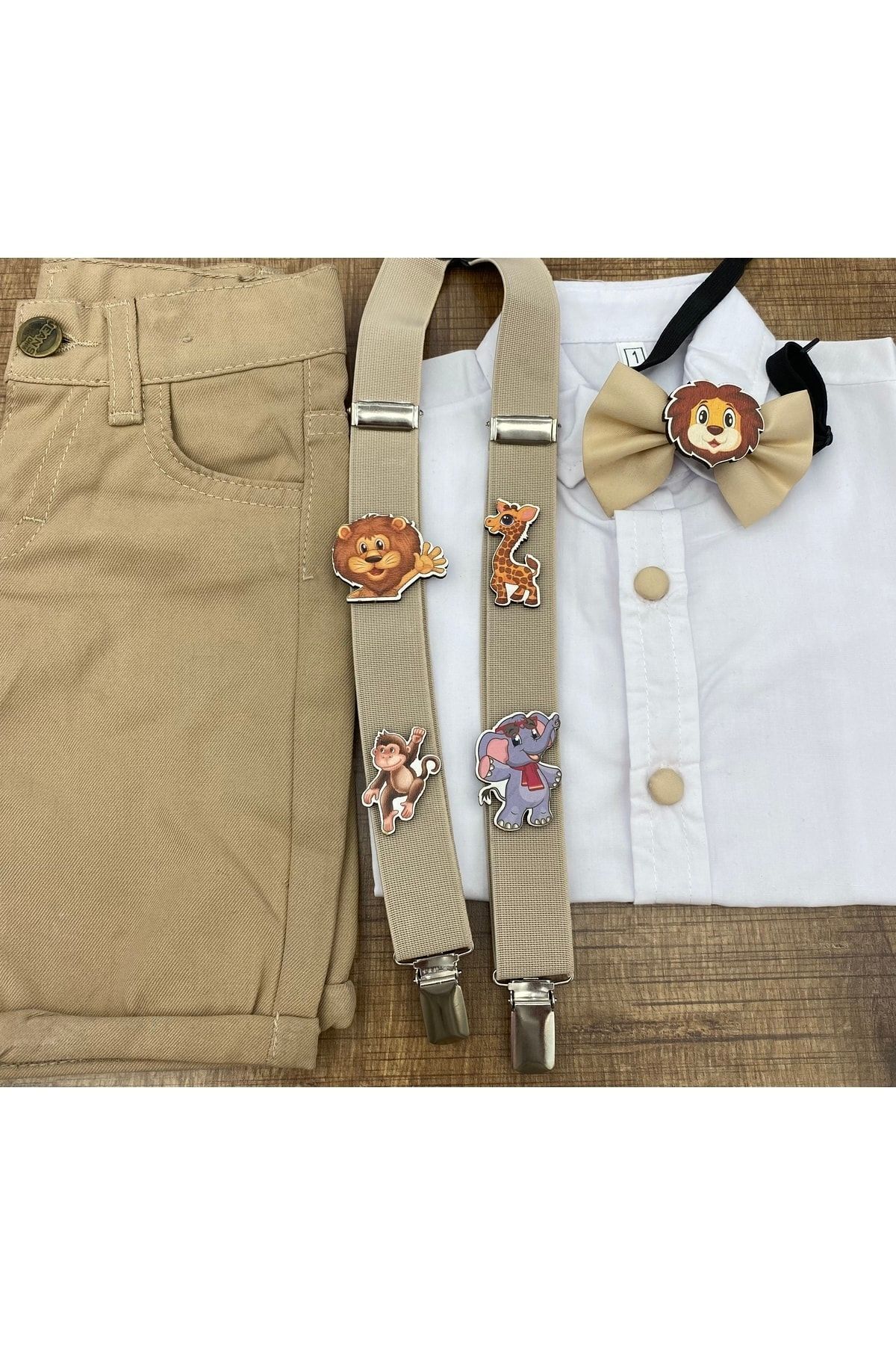 MFS Bej Askı Papyon Şort Kısa Kol Gömlek