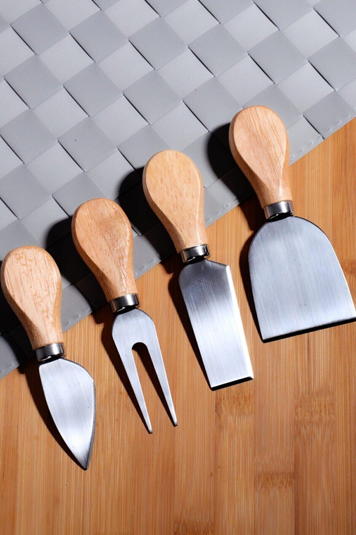 MİMOZA PARK Mimoza 4 Parça Bambu Saplı Peynir Bıcağı Seti 4 Lü