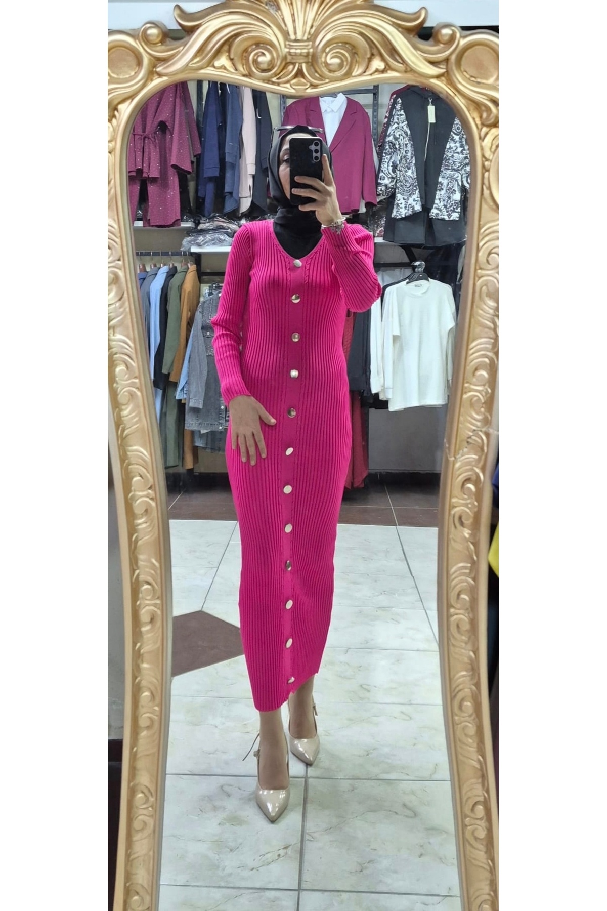 Mintaş Önden düğmeli triko elbise