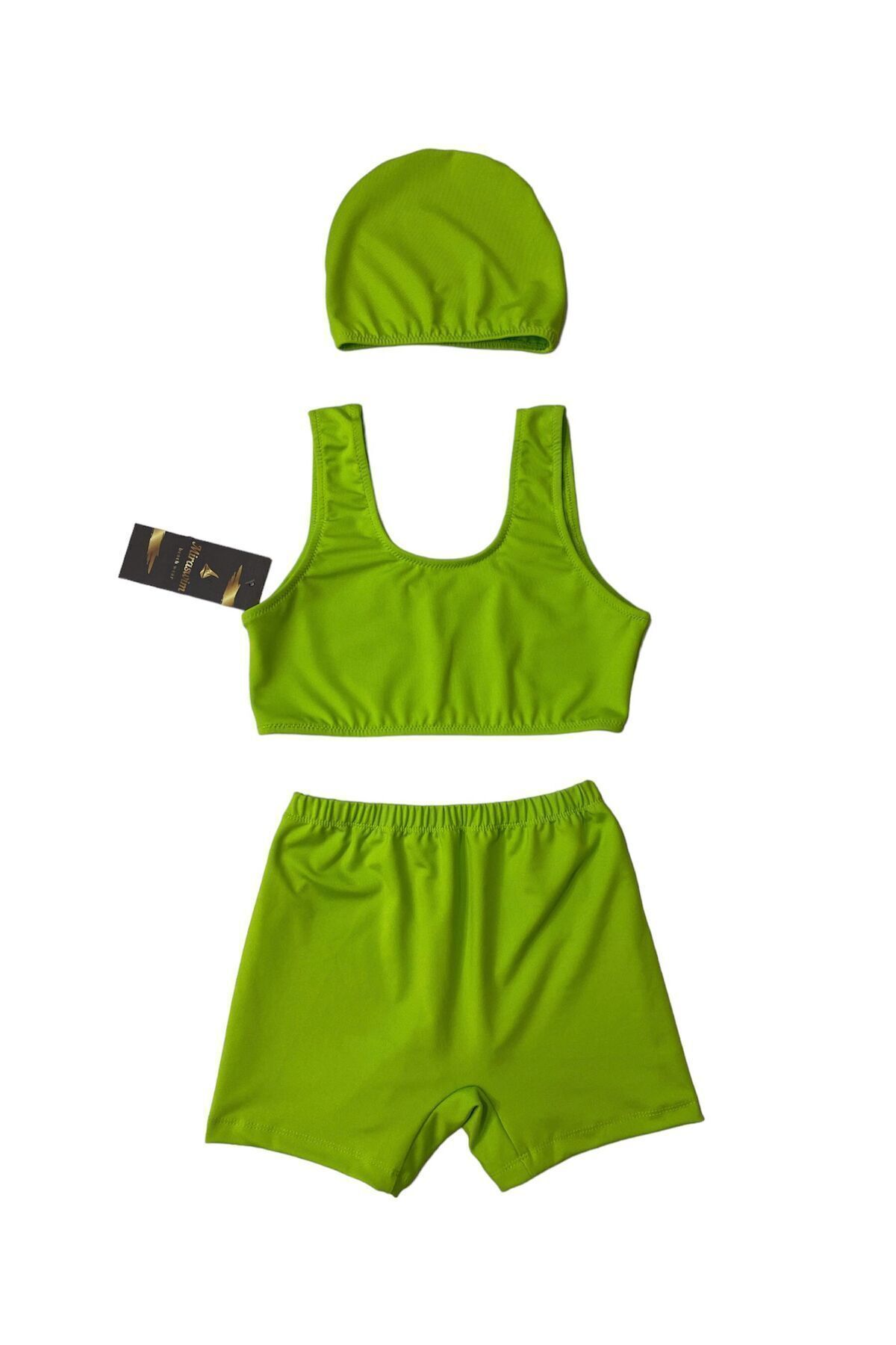MİRASWİM KIZ ÇOCUK MAYO NEON YEŞİL (ŞORT,BONE VE BÜSTİYER) Özellikleri