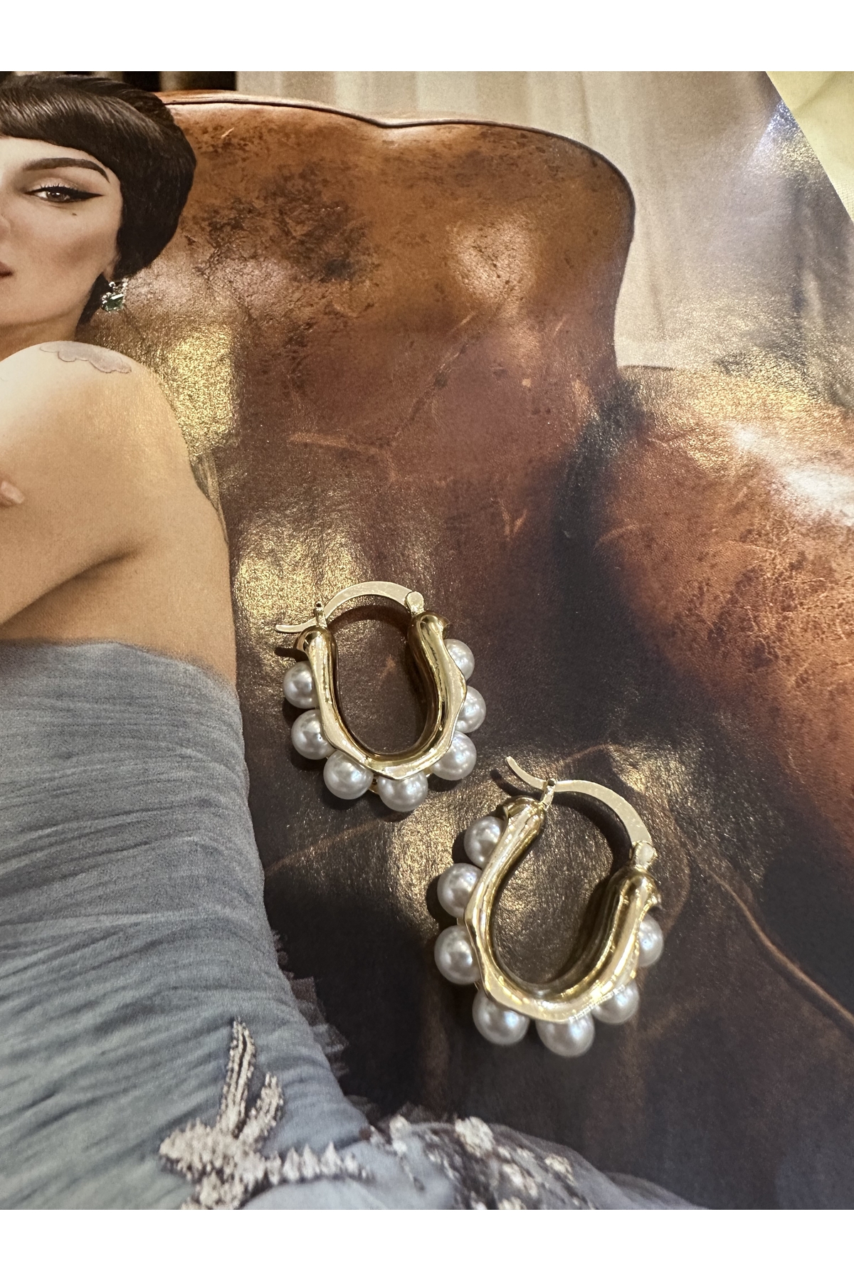 Modakaya Çelik incili küpe