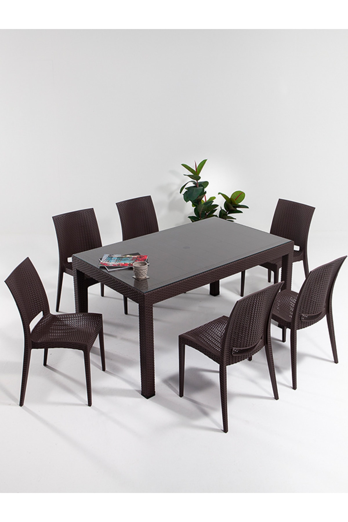 Modalife Rattan 6 Kişilik Camlı Masa Takımı - Kahve