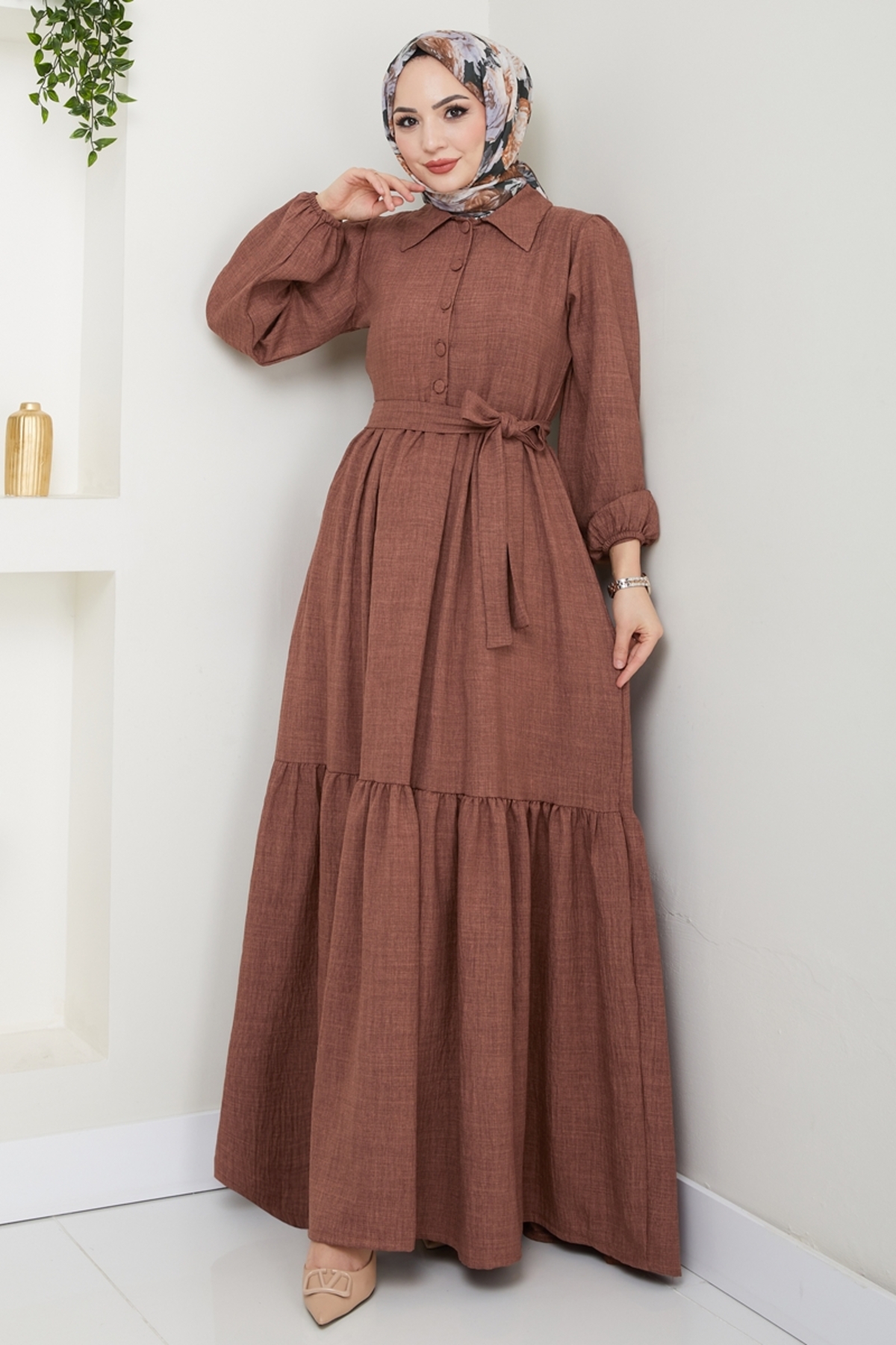 ModaMerve Eteği Katlı Tesettür Elbise 3025HBS856-MS Kahve Özellikleri