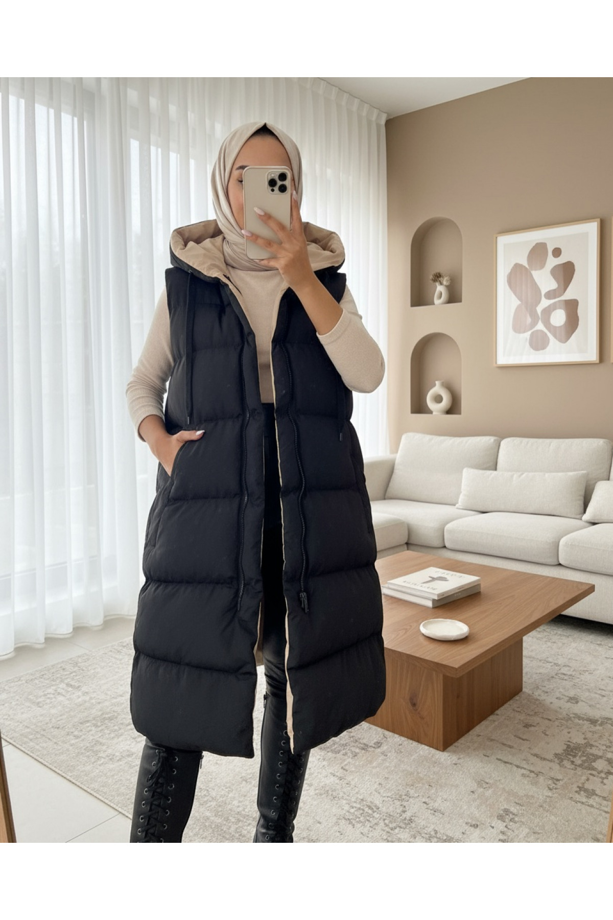 Modamorfo Kapşonlu Çift Taraflı Şişme Yelek -Siyah