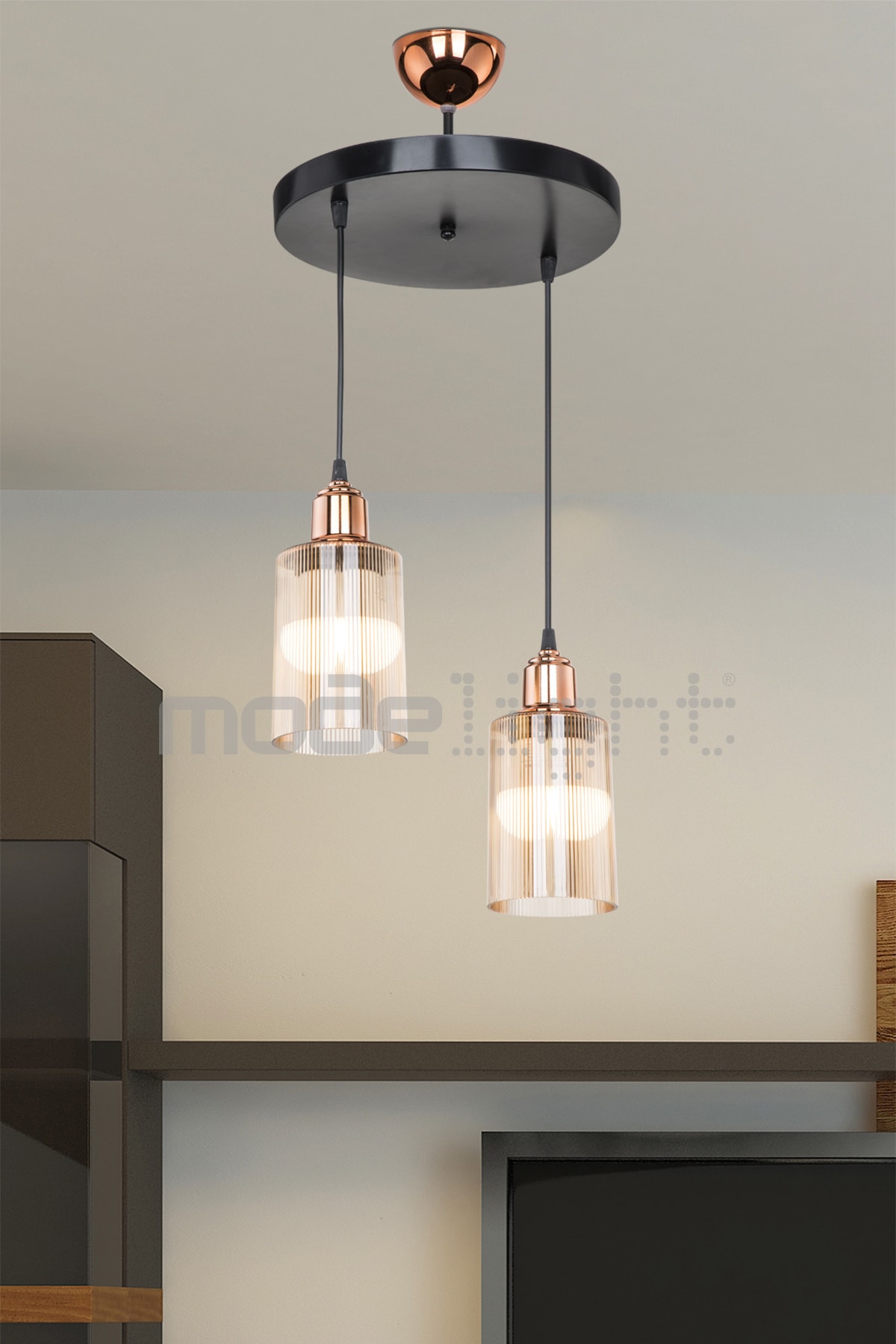 Modelight Aksel Bakır Duylu 2li Optik Camlı Avize Özellikleri