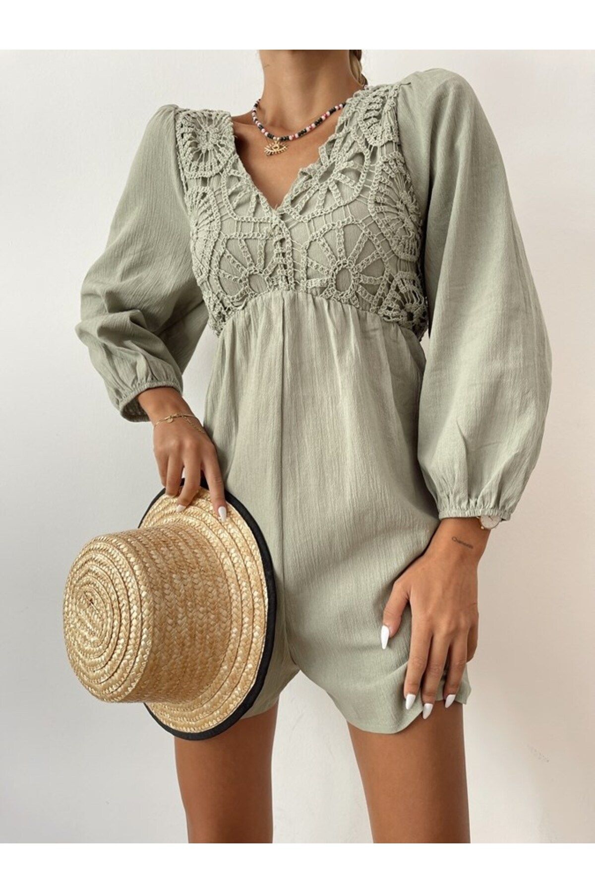 mondebutik Güpür İşlemeli Şort Tulum Özellikleri