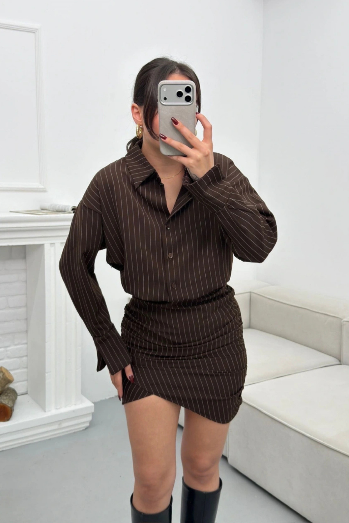 MOZENA Çizgili Mini Gömlek Elbise Özellikleri