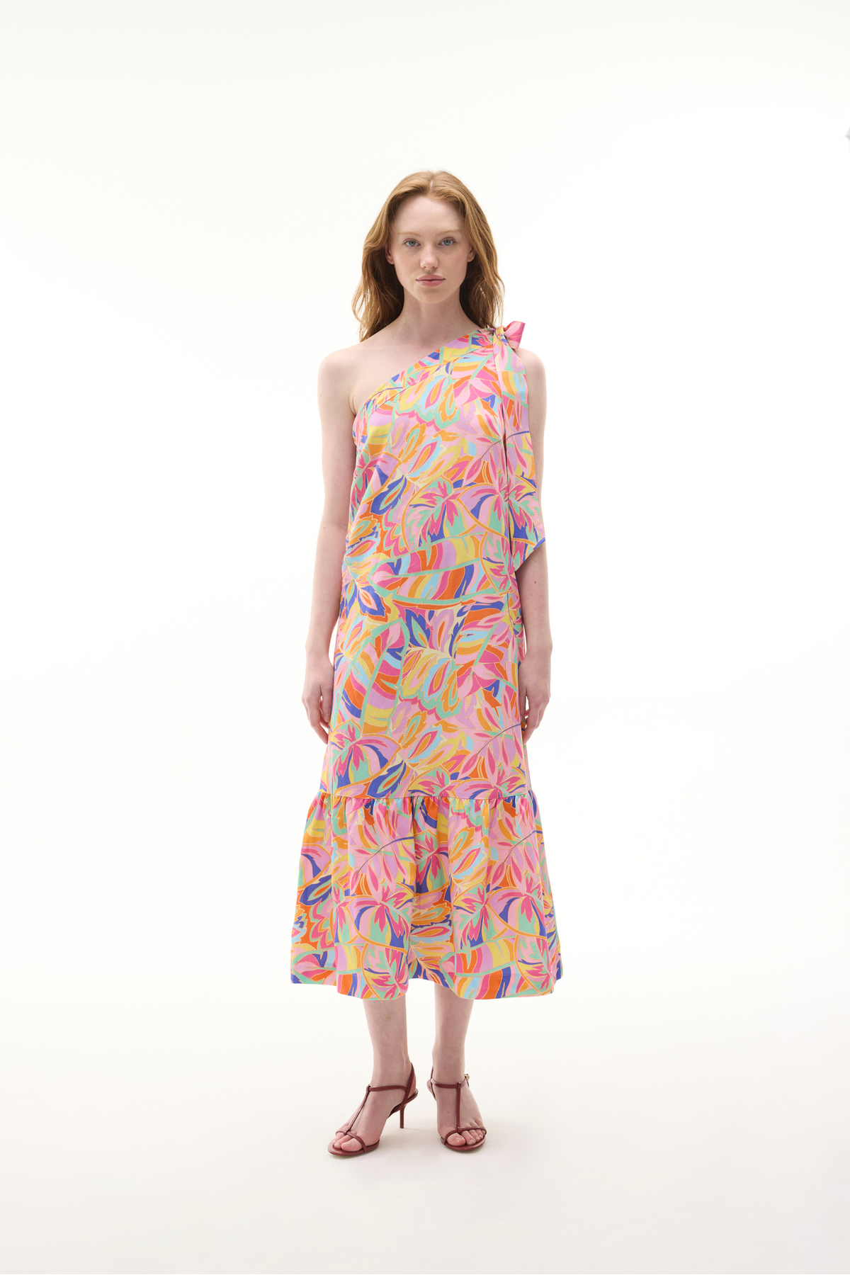 Mudo BASKILI TEK OMUZ MİDİ ELBİSE
