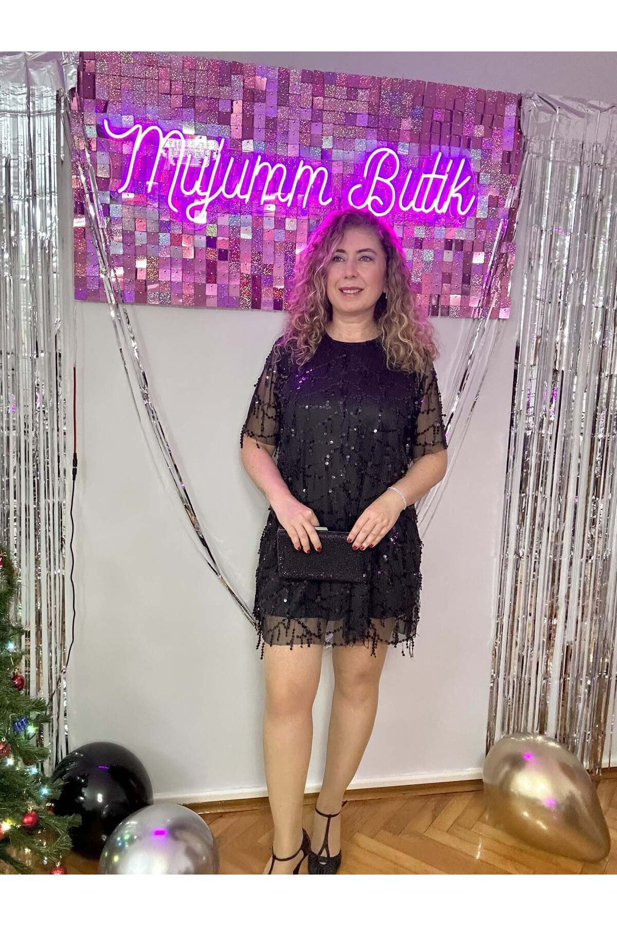 MUJUMMBUTİK SİYAH PULLU PÜSKÜL ELBİSE Özellikleri