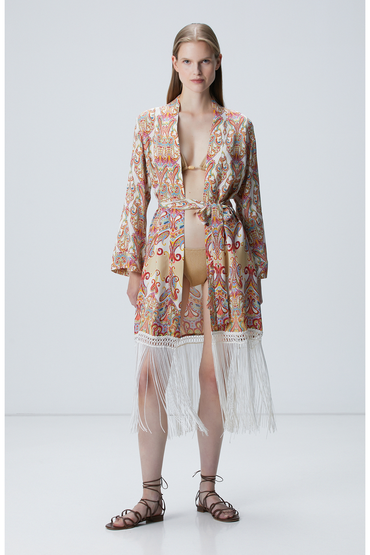Network Bej Püsküllü Desenli Kaftan