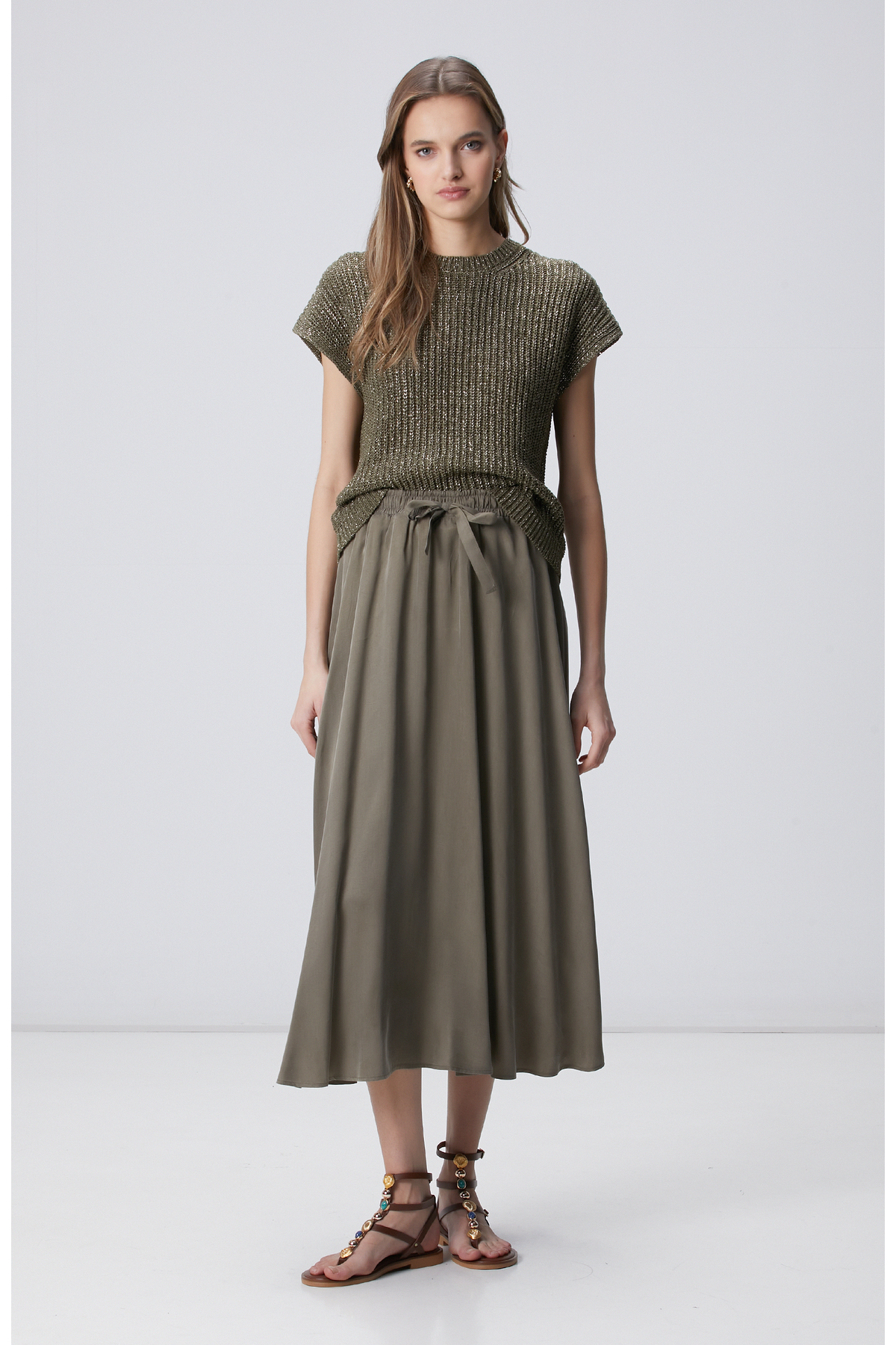 Network Haki Maksi Cupro Etek