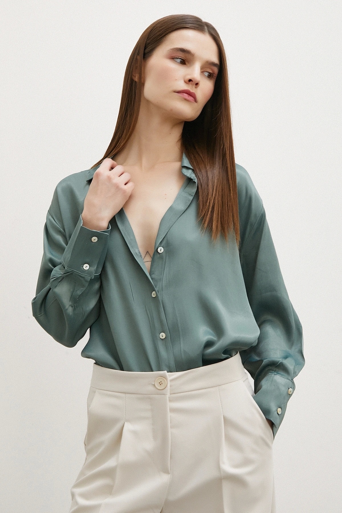 Never more V Yaka Gömlek Yeşil Özellikleri